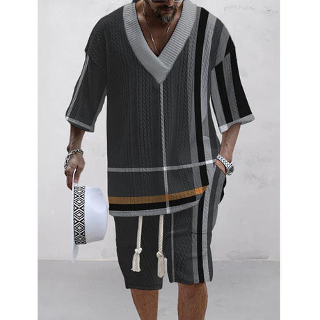 Men's Printed Short Sleeve Shorts Textured Set 05470168L
