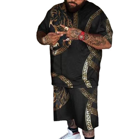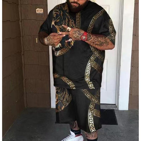 Men's Plus Size Casual Printed Short Sleeve T-Shirt Shorts Set 08717831L