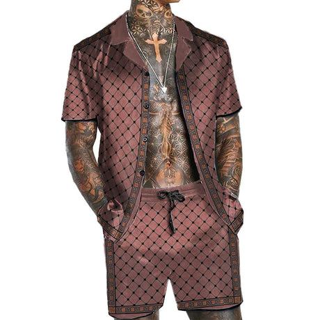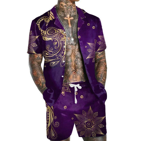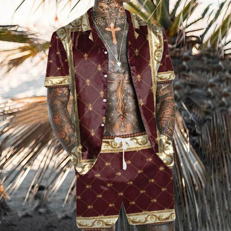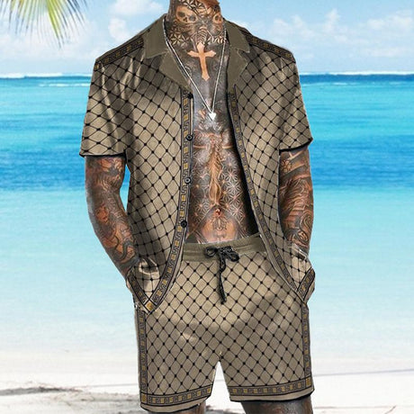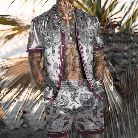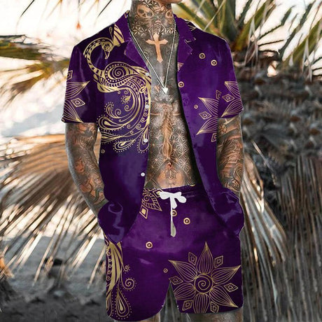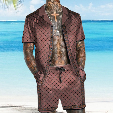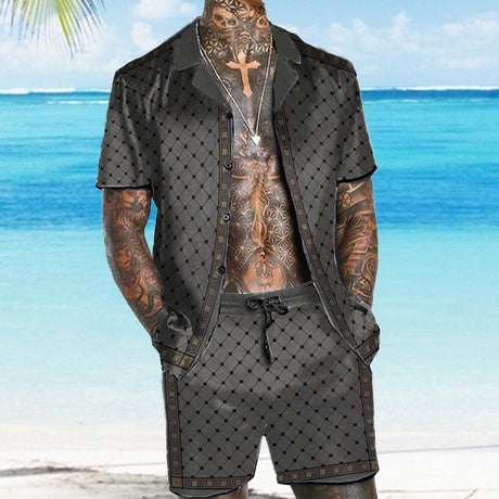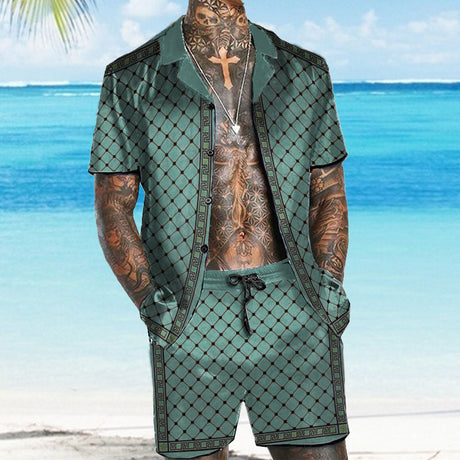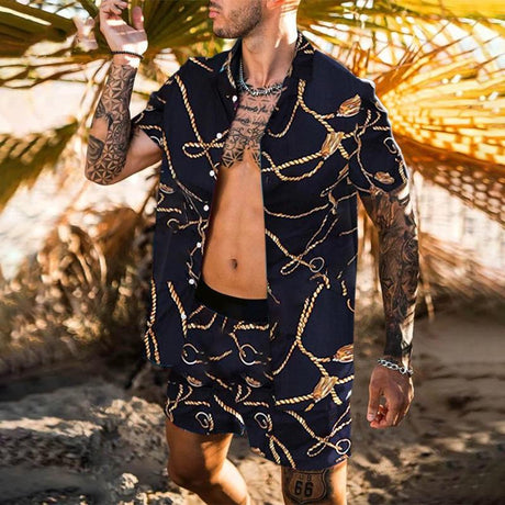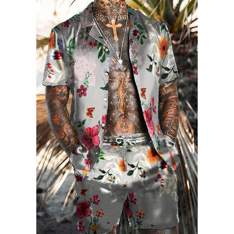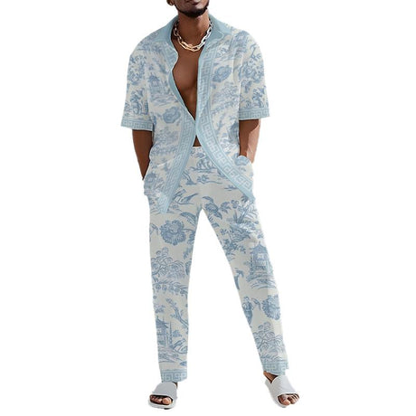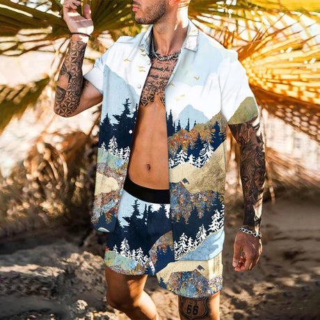 Men's Hawaiian Casual Set Short Sleeve Shirt Set 73350076L