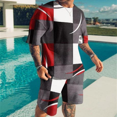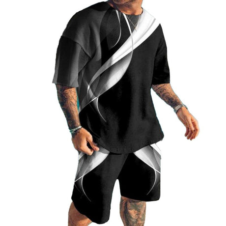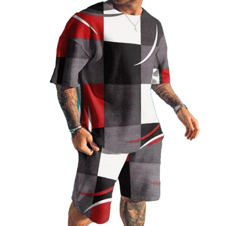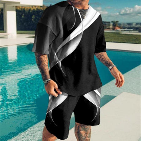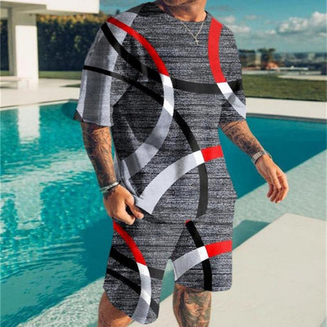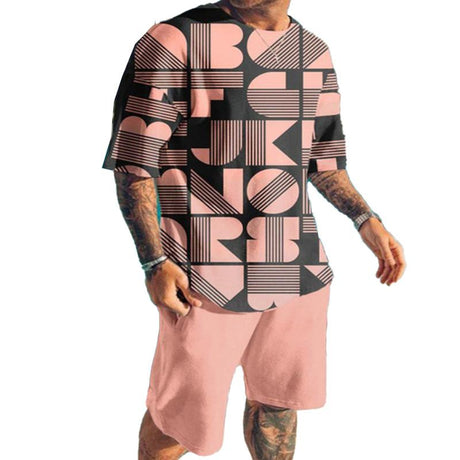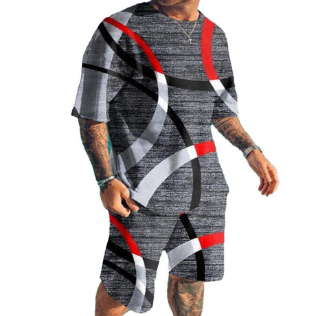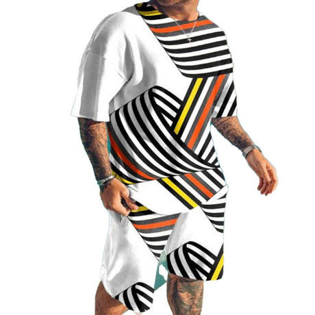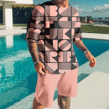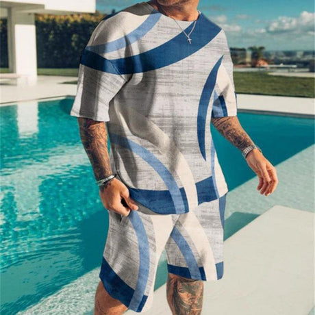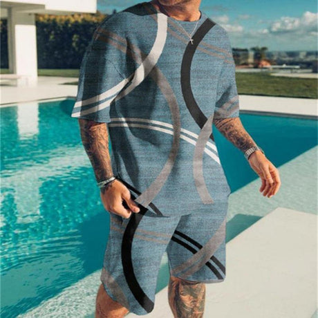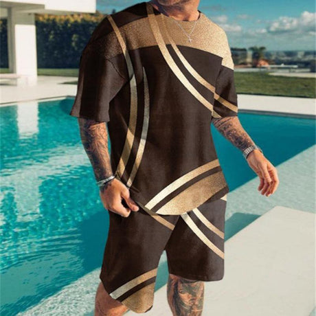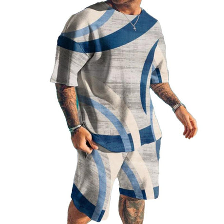 Men's Casual Printed T-shirt Shorts Beach Suit 34304541YM