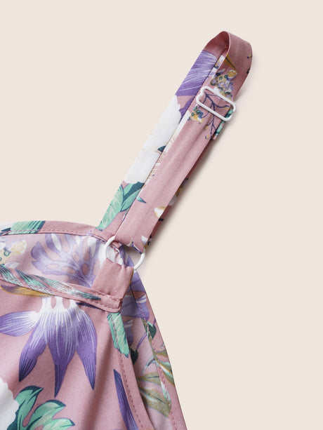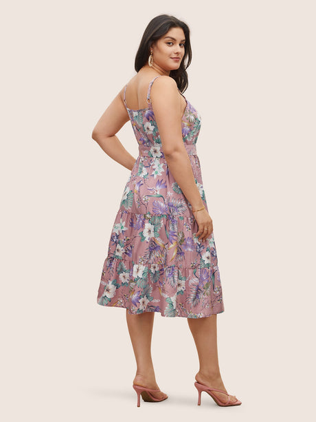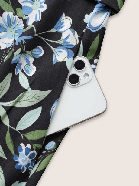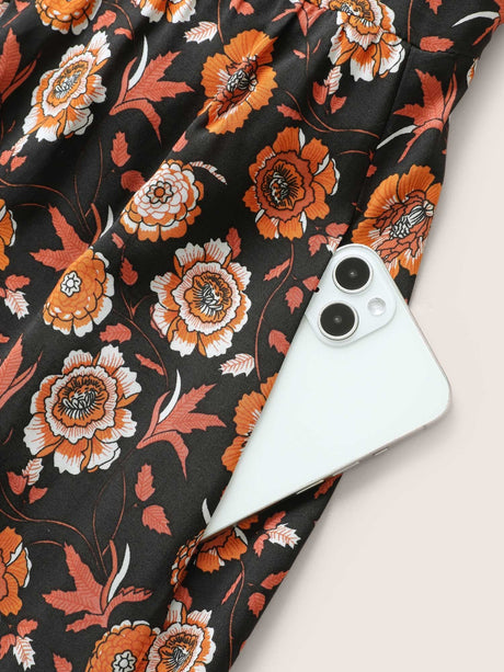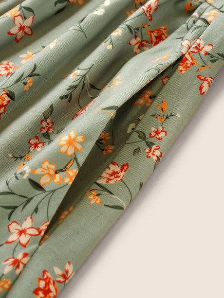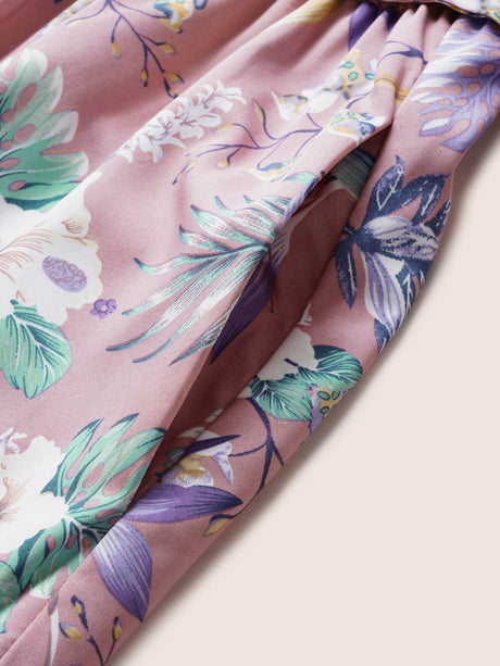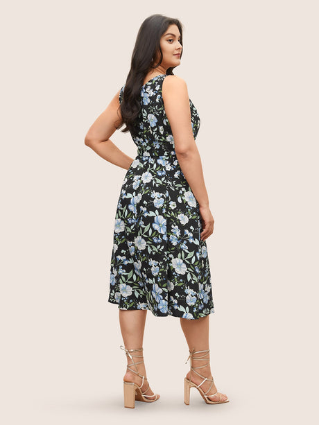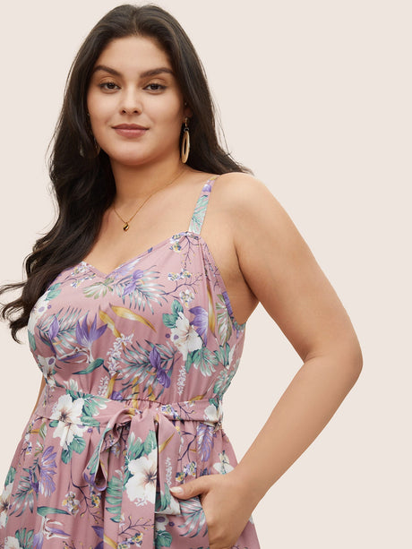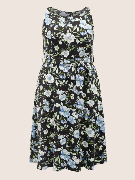 Floral Elastic Waist Sleeveless Pocket Belted Dress