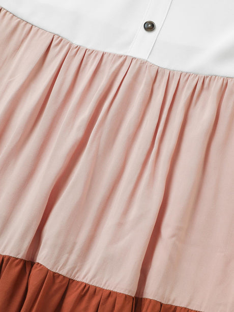Heart Print Surplice Neck Patchwork Flutter Hem Dress