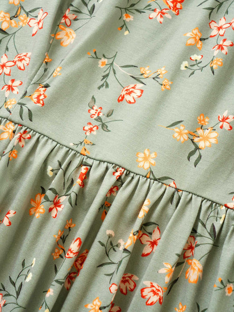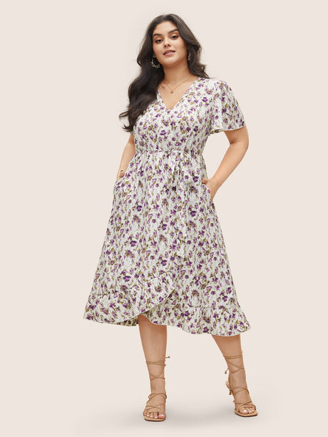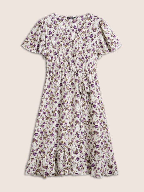 Ditsy Floral Ruffle Half Sleeve Belted Dress