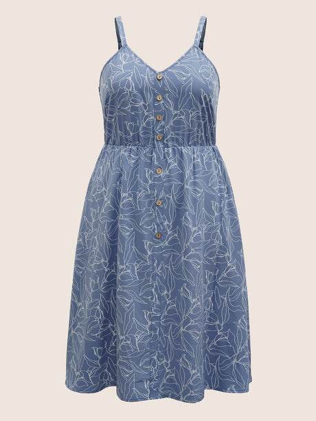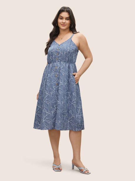 Floral Patchwork Pocket Elastic Waist Sleeveless Dress