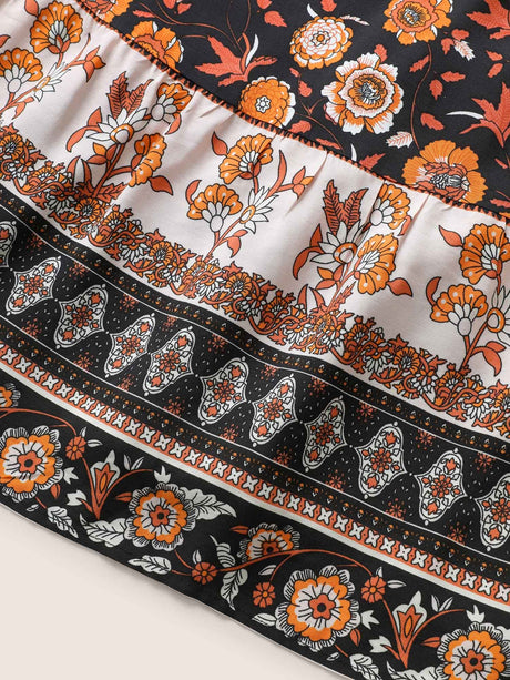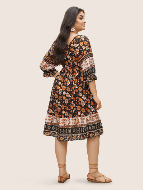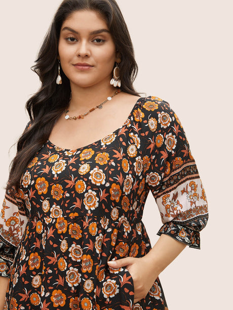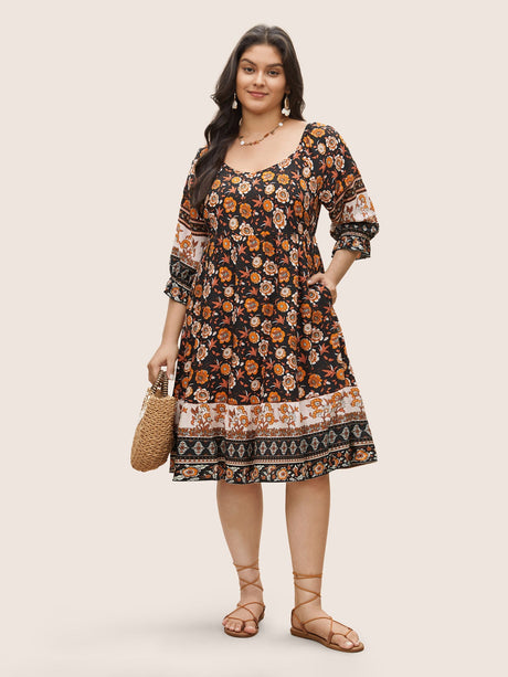 Bandana Print Square Neck Pocket Ruffle Sleeve Dress