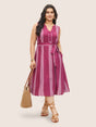 Boh Print Notched Sleeveless Belted Dress