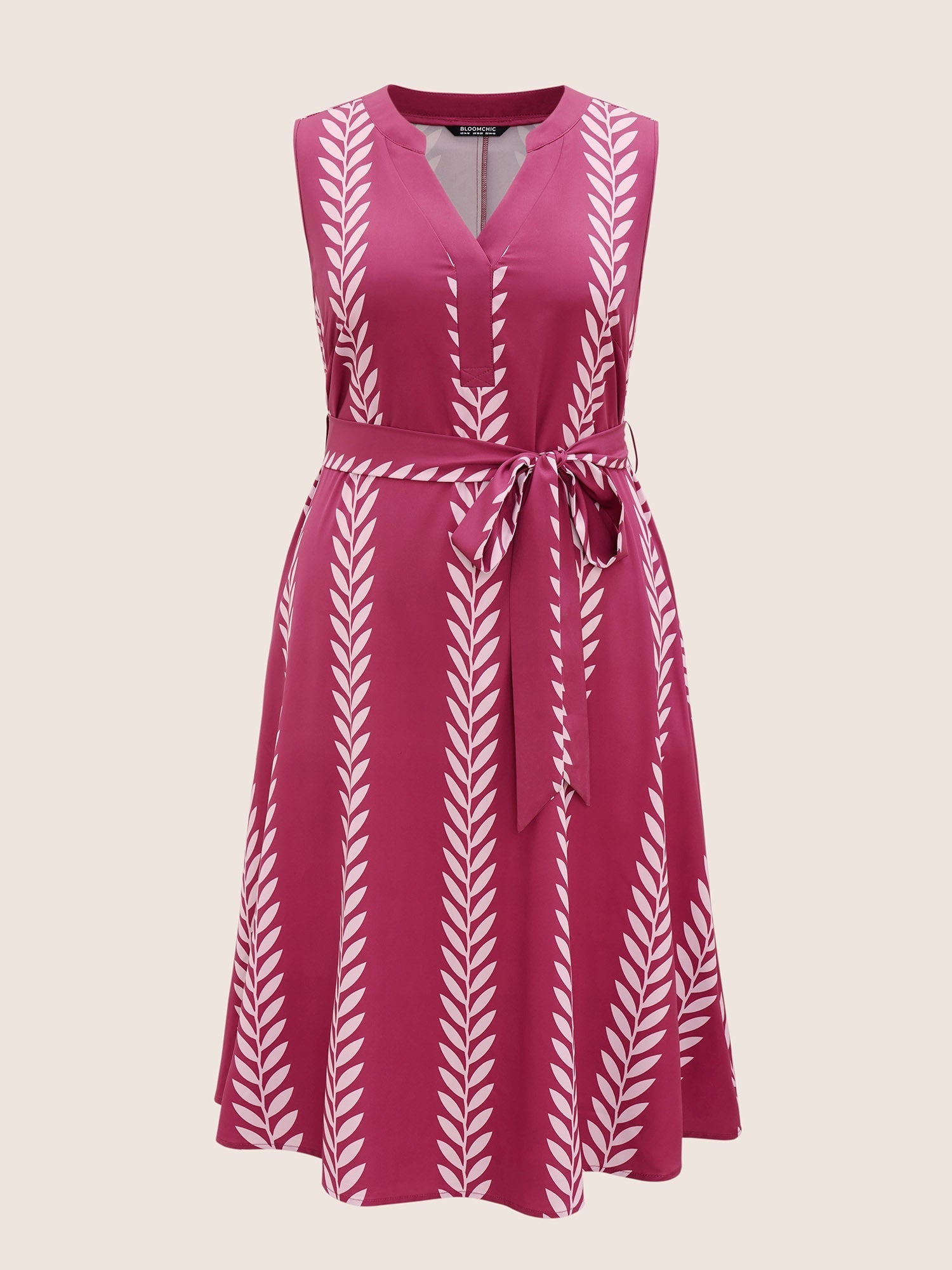 Boh Print Notched Sleeveless Belted Dress - Red-Violet / 10/M is backordered and will ship as soon as it is back in stock.