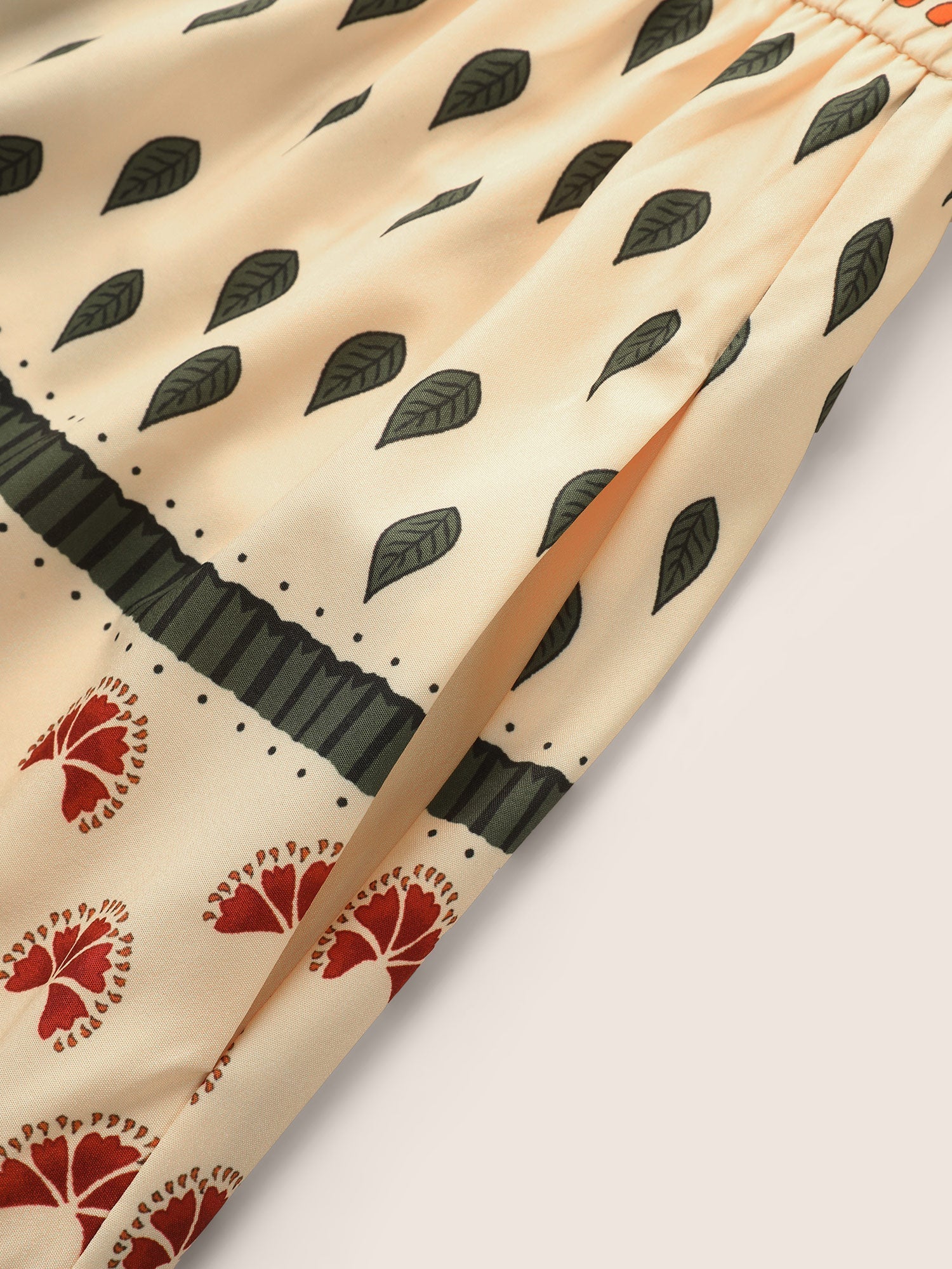 Boho Print Notched Collar Patchwork Belted Dress
