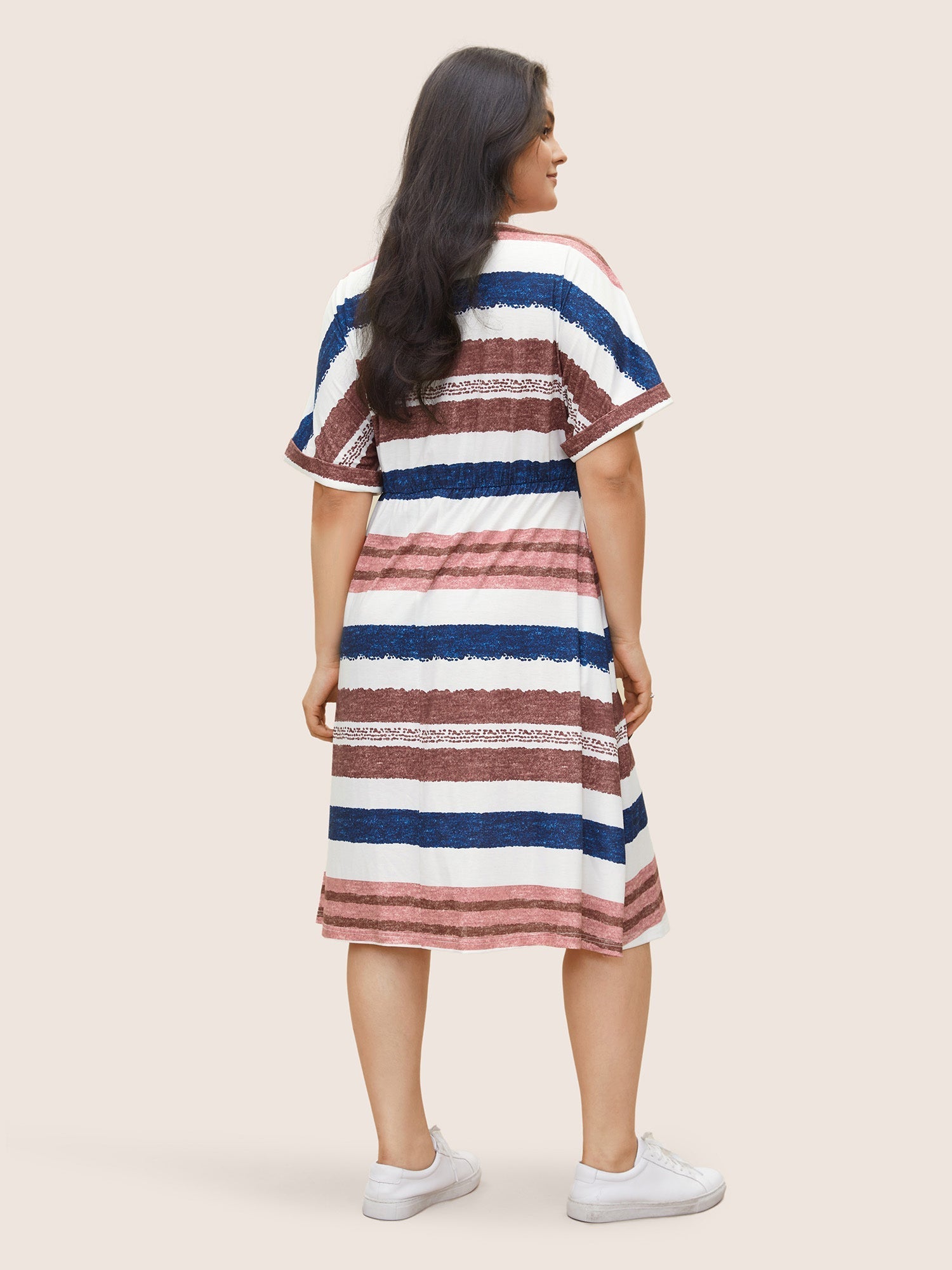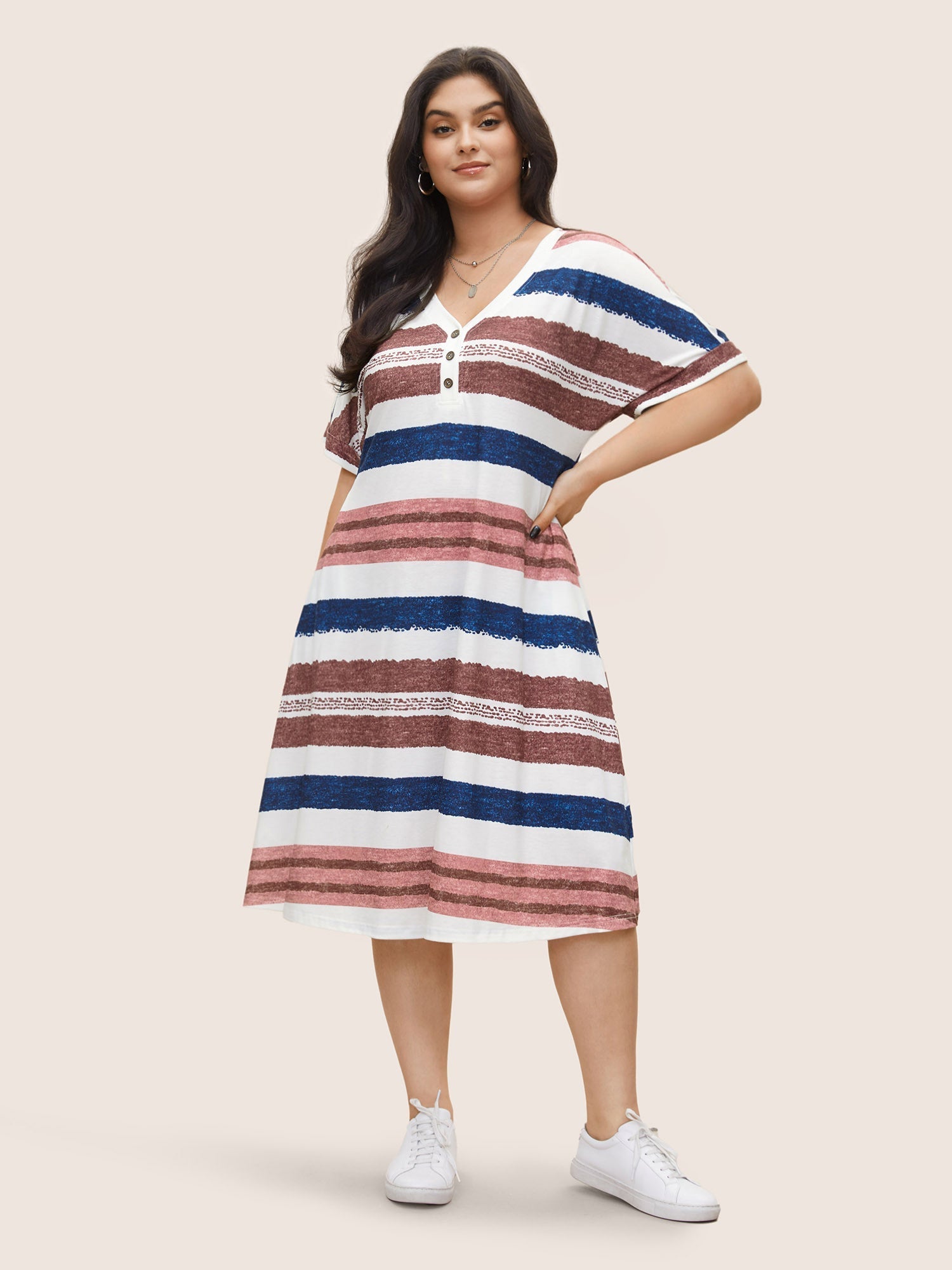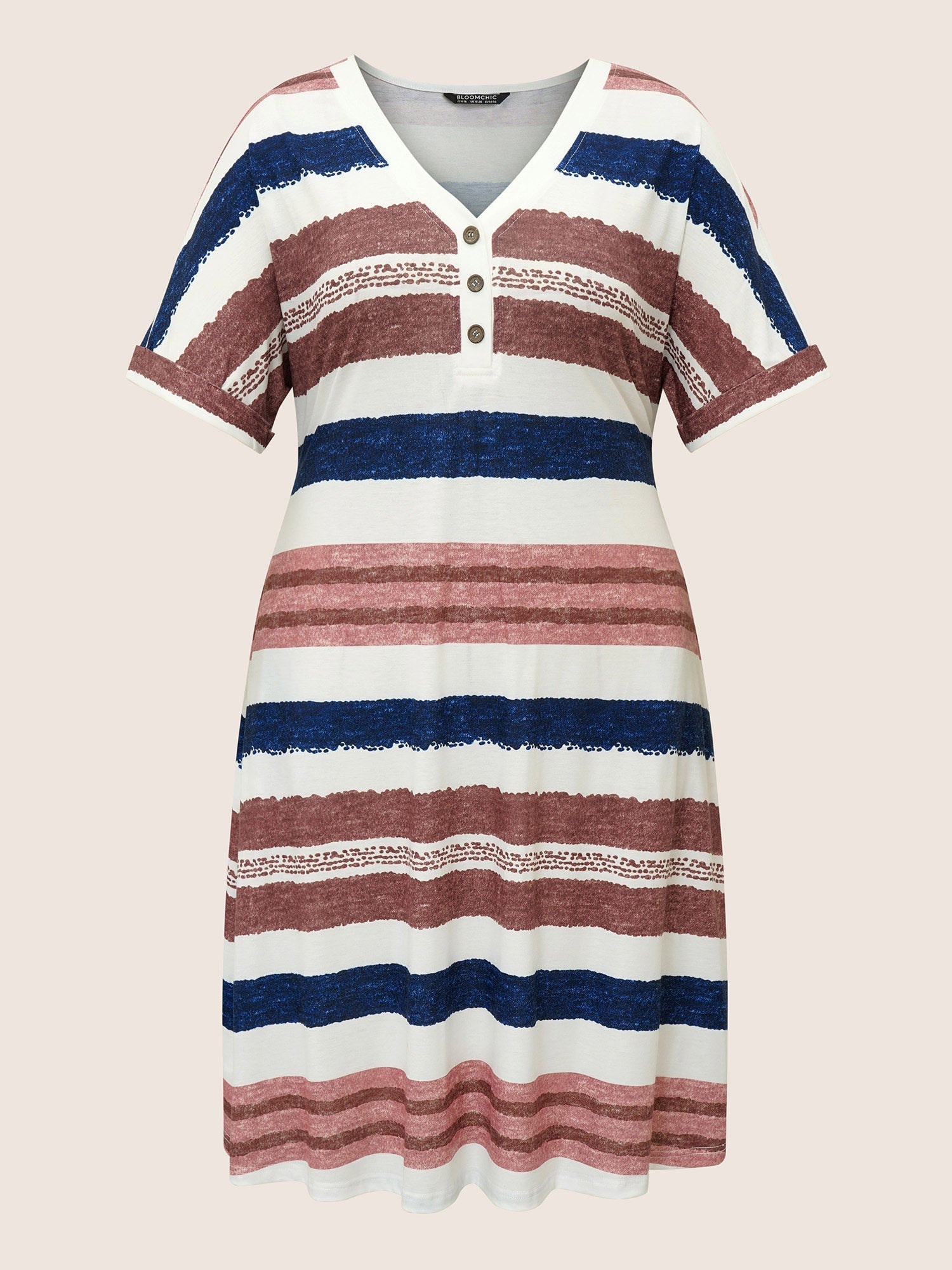 Contrast Striped Button Detail Pocket Dress - Multicolor / 10/M is backordered and will ship as soon as it is back in stock.