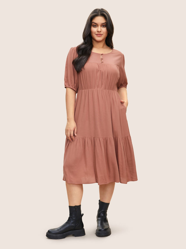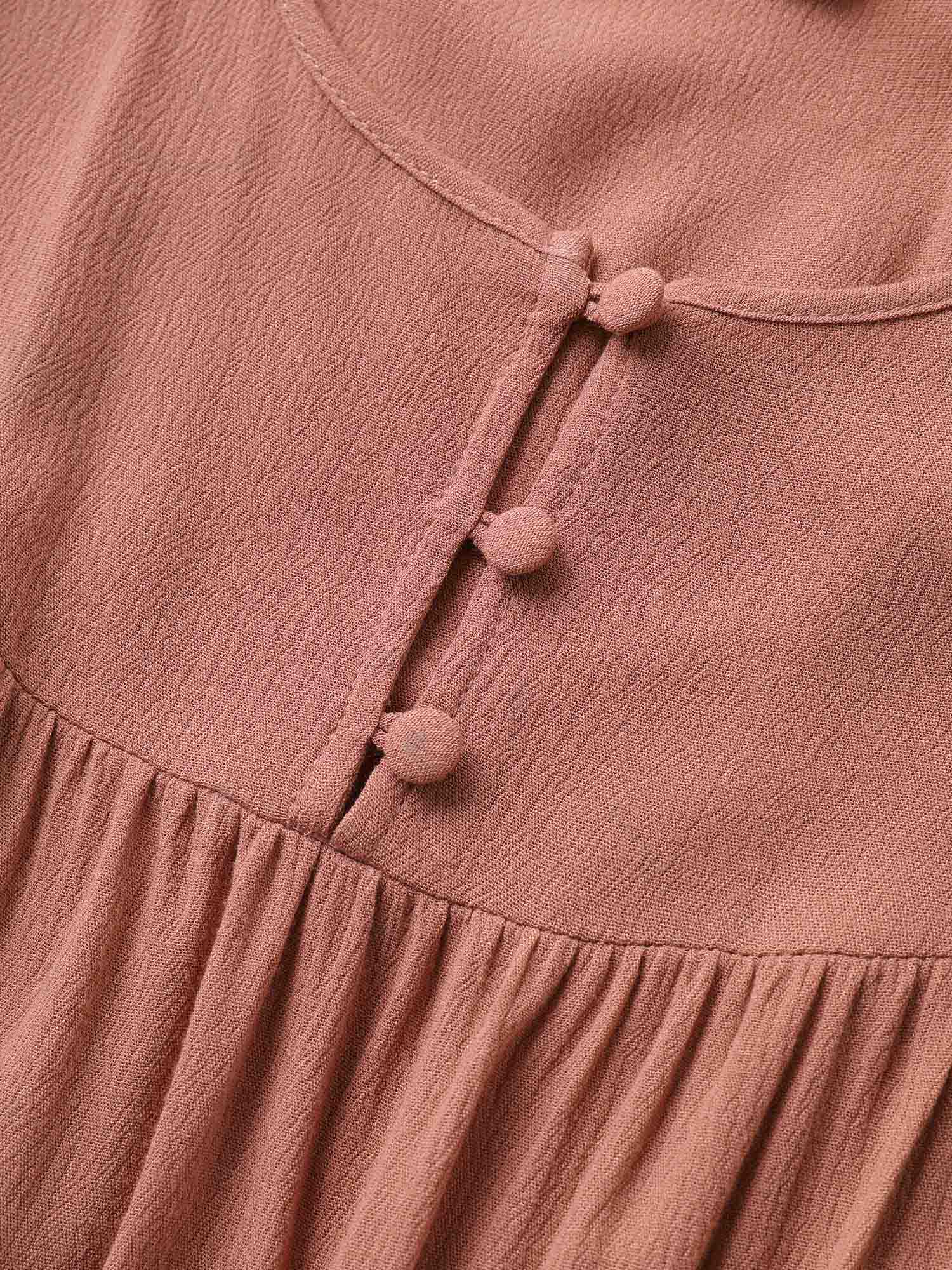 Elastic Waist Patchwork Gathered Rayon Dress - Russet / 10/M is backordered and will ship as soon as it is back in stock.