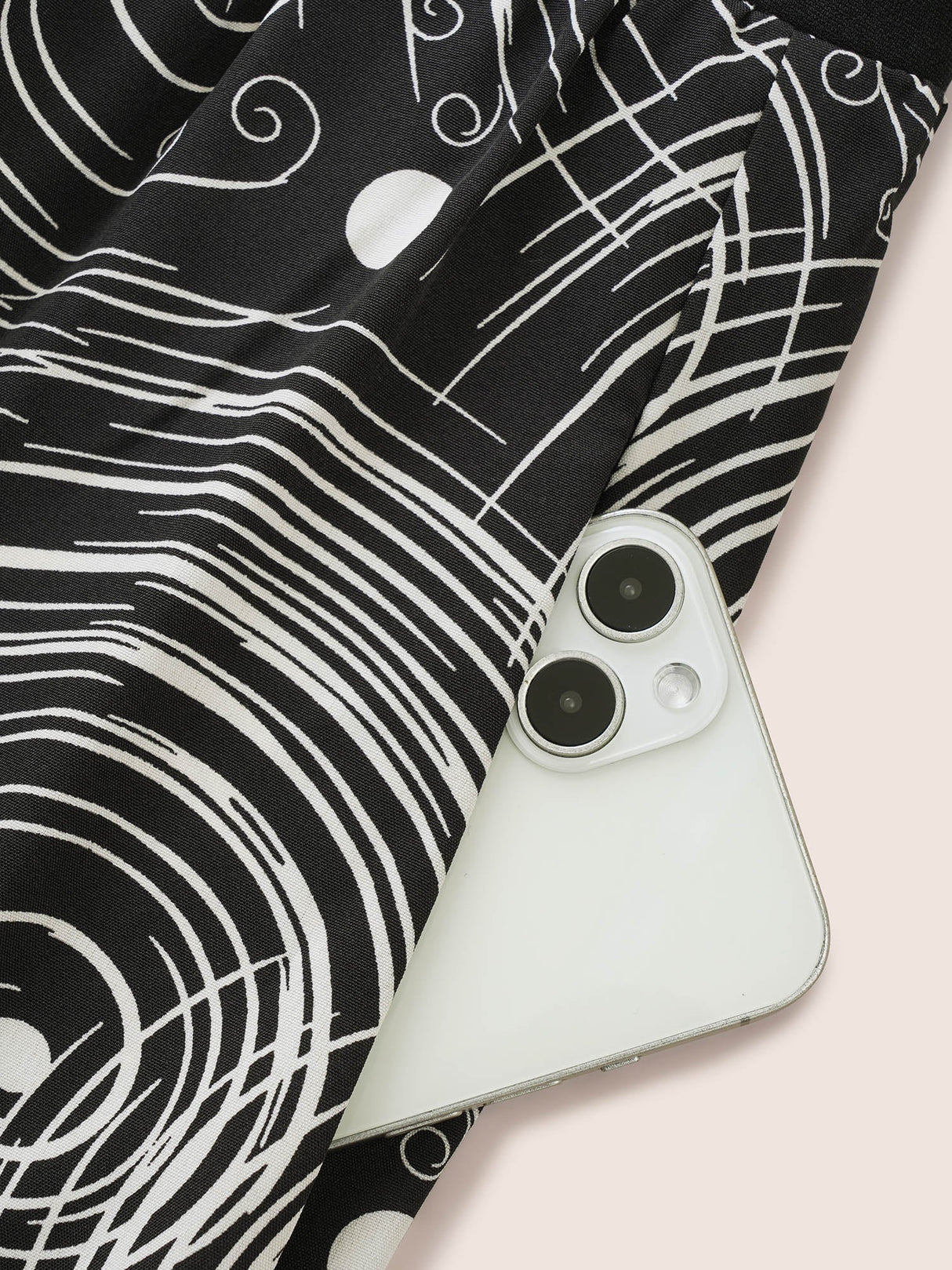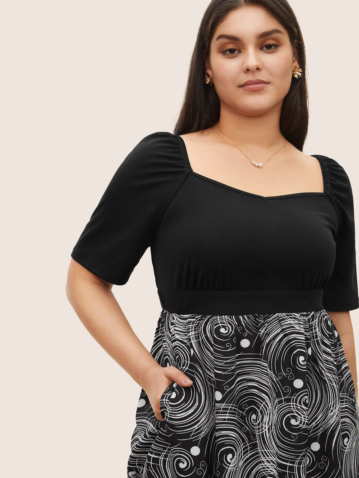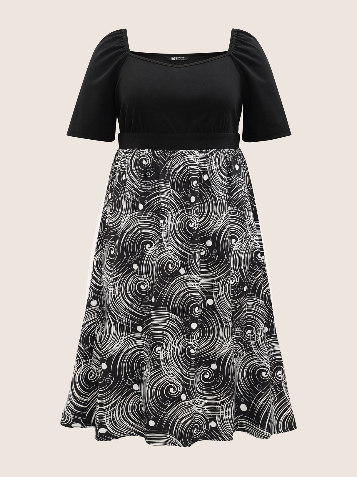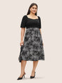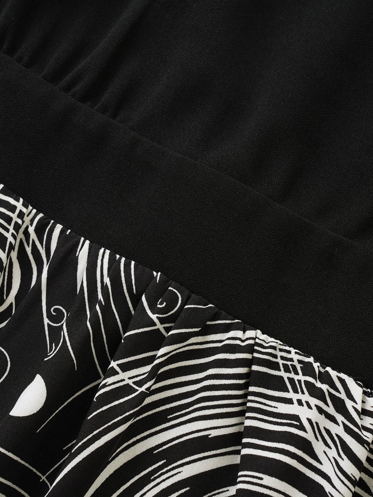 Figurative Print Patchwork Pleated Square Neck Dress - Black / 10/M is backordered and will ship as soon as it is back in stock.