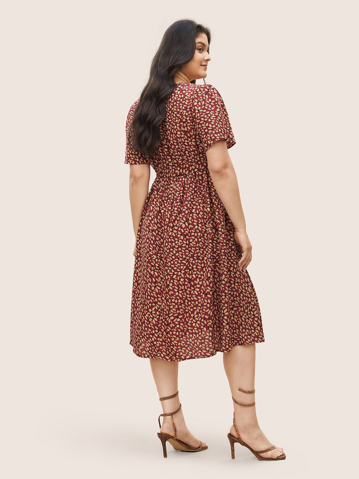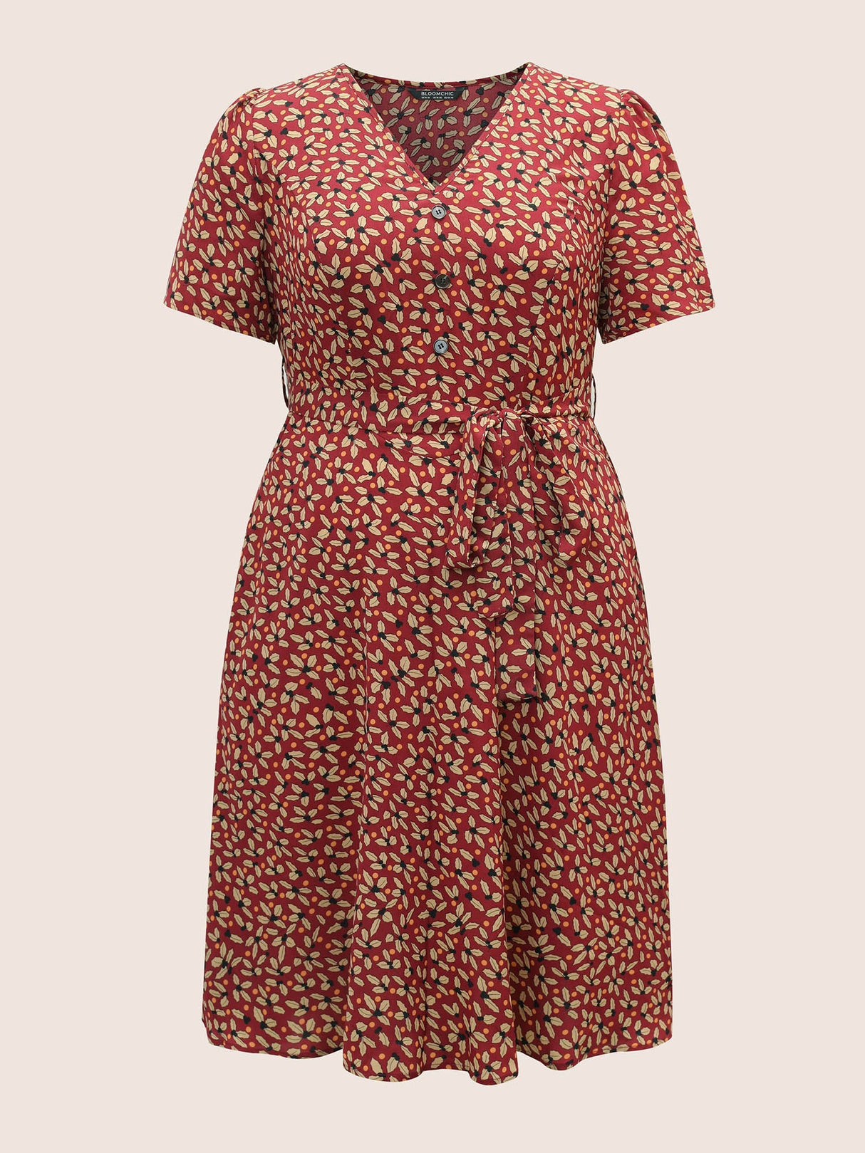 Geometric Graphic Button Detail Pocket Dress - Burgundy / 10/M is backordered and will ship as soon as it is back in stock.