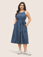Plaid Pocket Belted Halter Midi Dress - Dark Blue / 10/M is backordered and will ship as soon as it is back in stock.