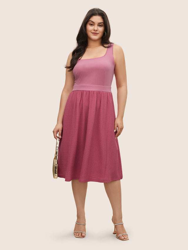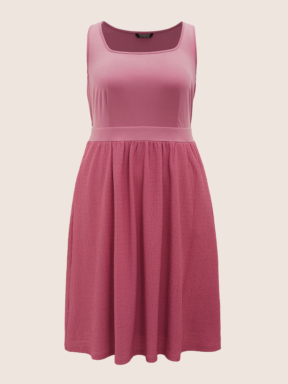 Plisse Contrast Patchwork Shirred Back Tank Dress