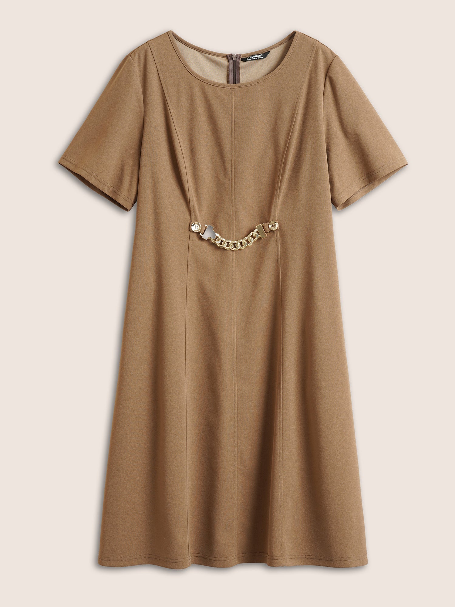 Round Neck Metal Chain Detail Dress - Tan / 10/M is backordered and will ship as soon as it is back in stock.