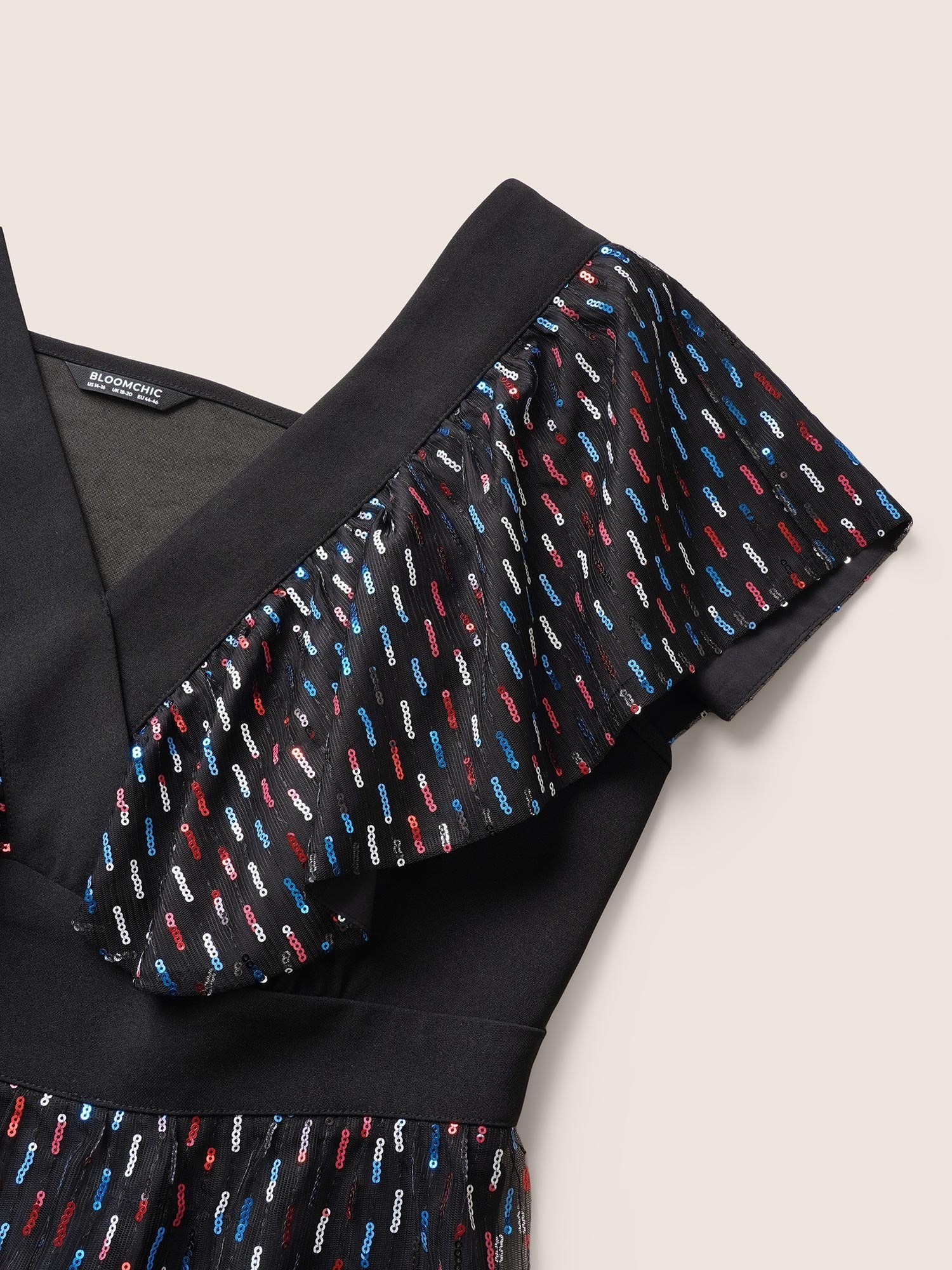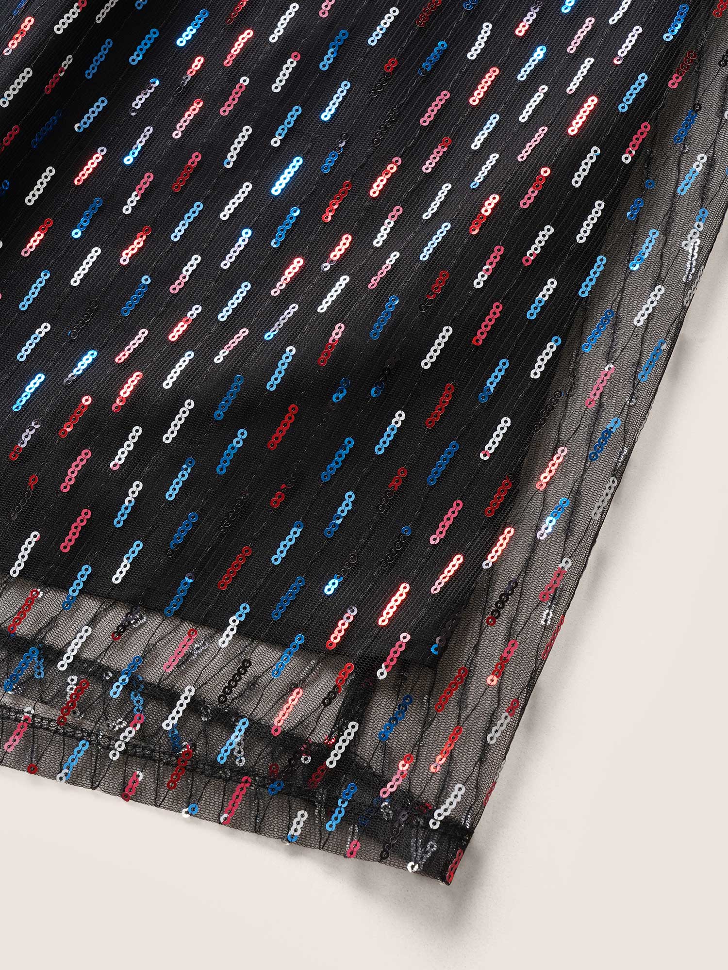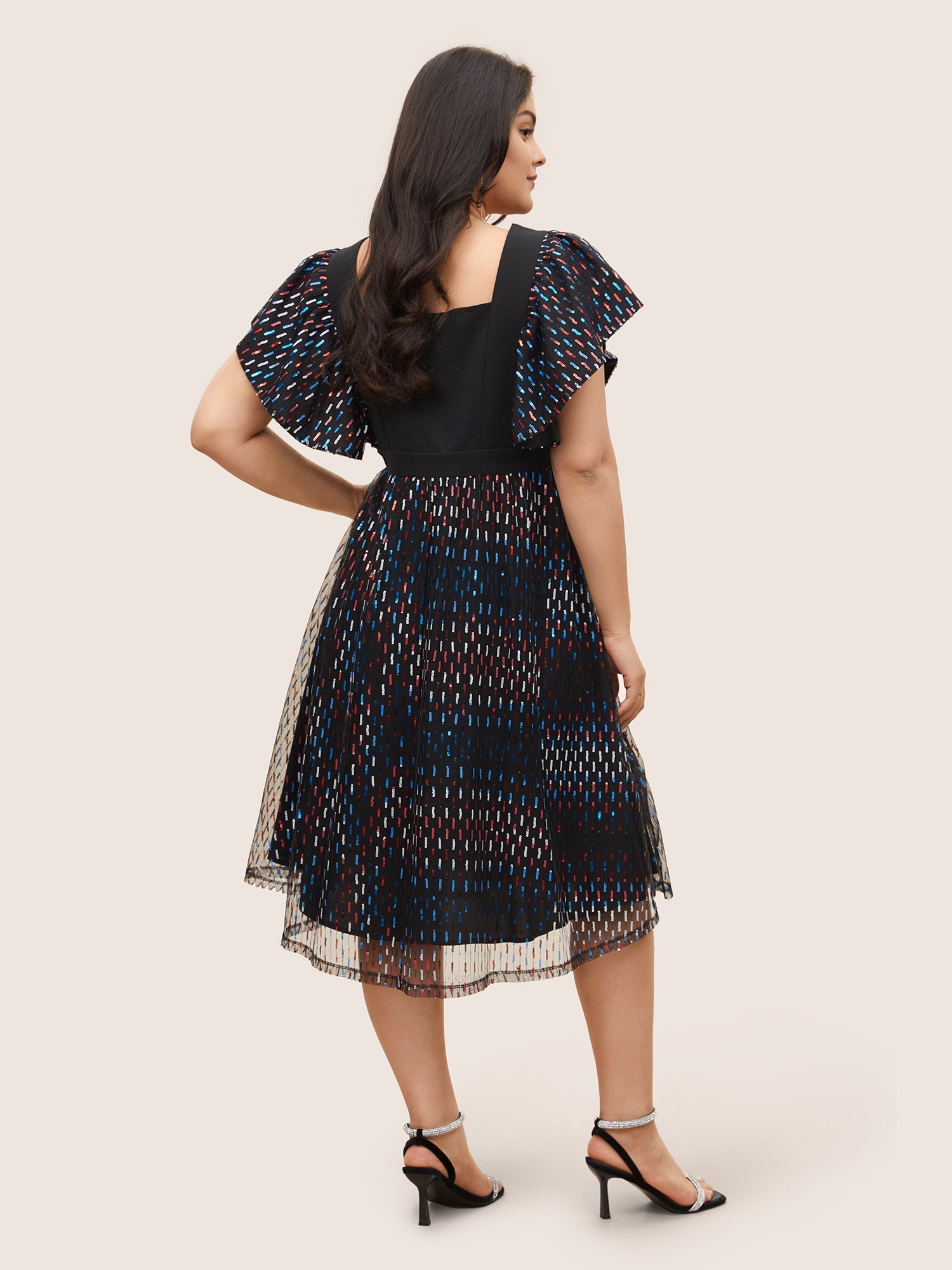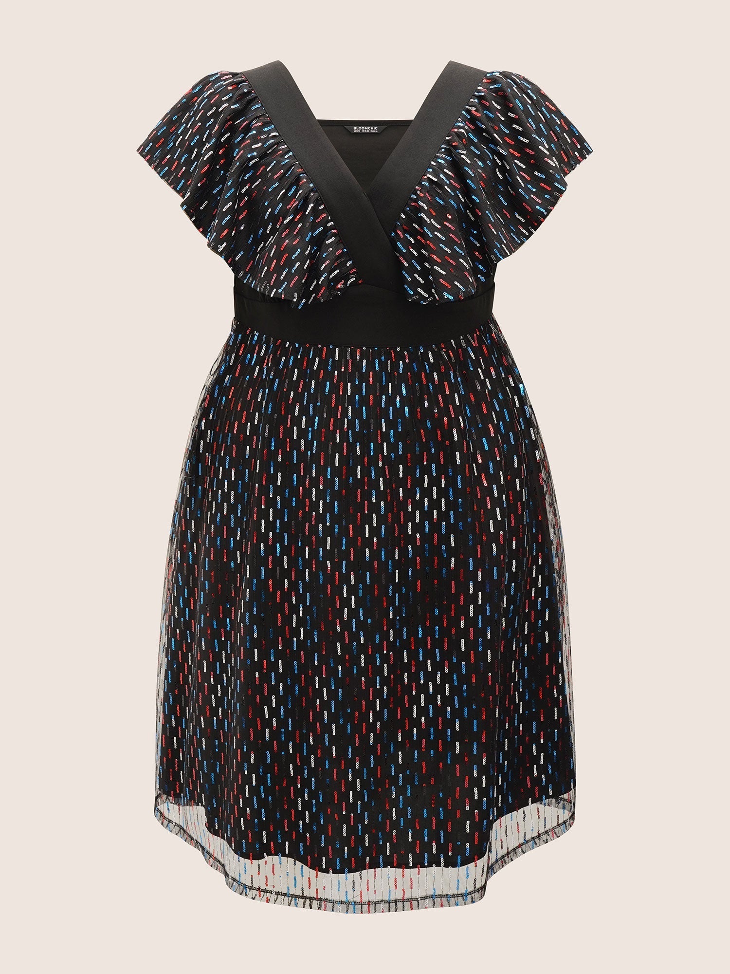 Sequin Patchwork Pocket Flutter Cap Sleeve Dress