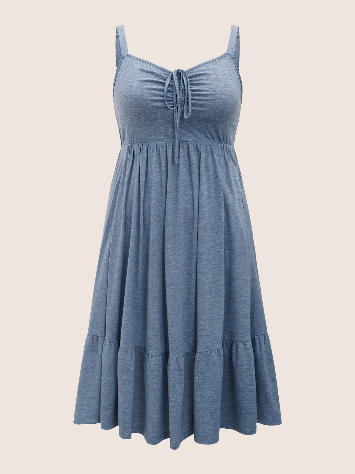 Solid Ruffle Layered Hem Drawstring Cami Dress - Stone / 10/M is backordered and will ship as soon as it is back in stock.