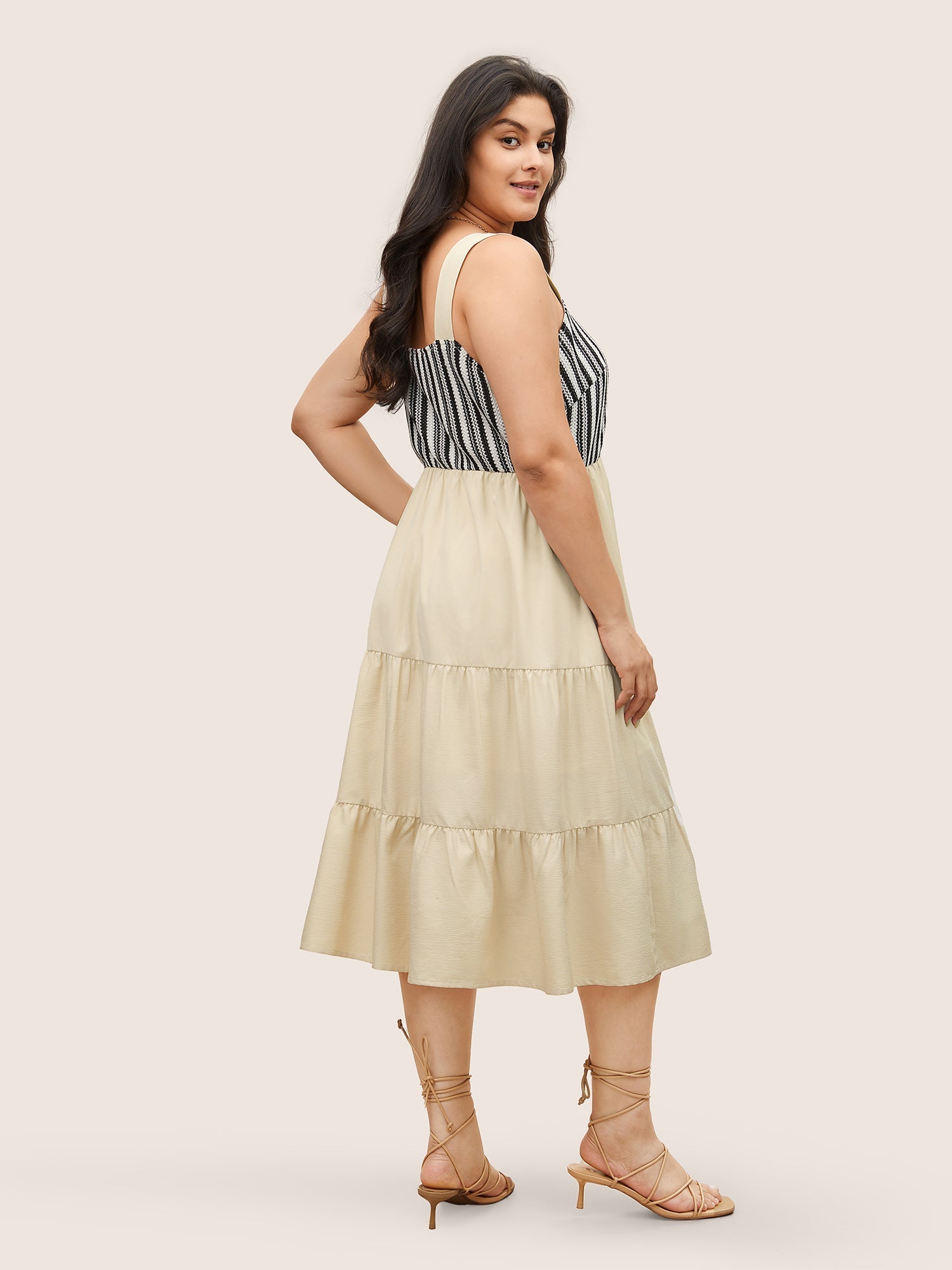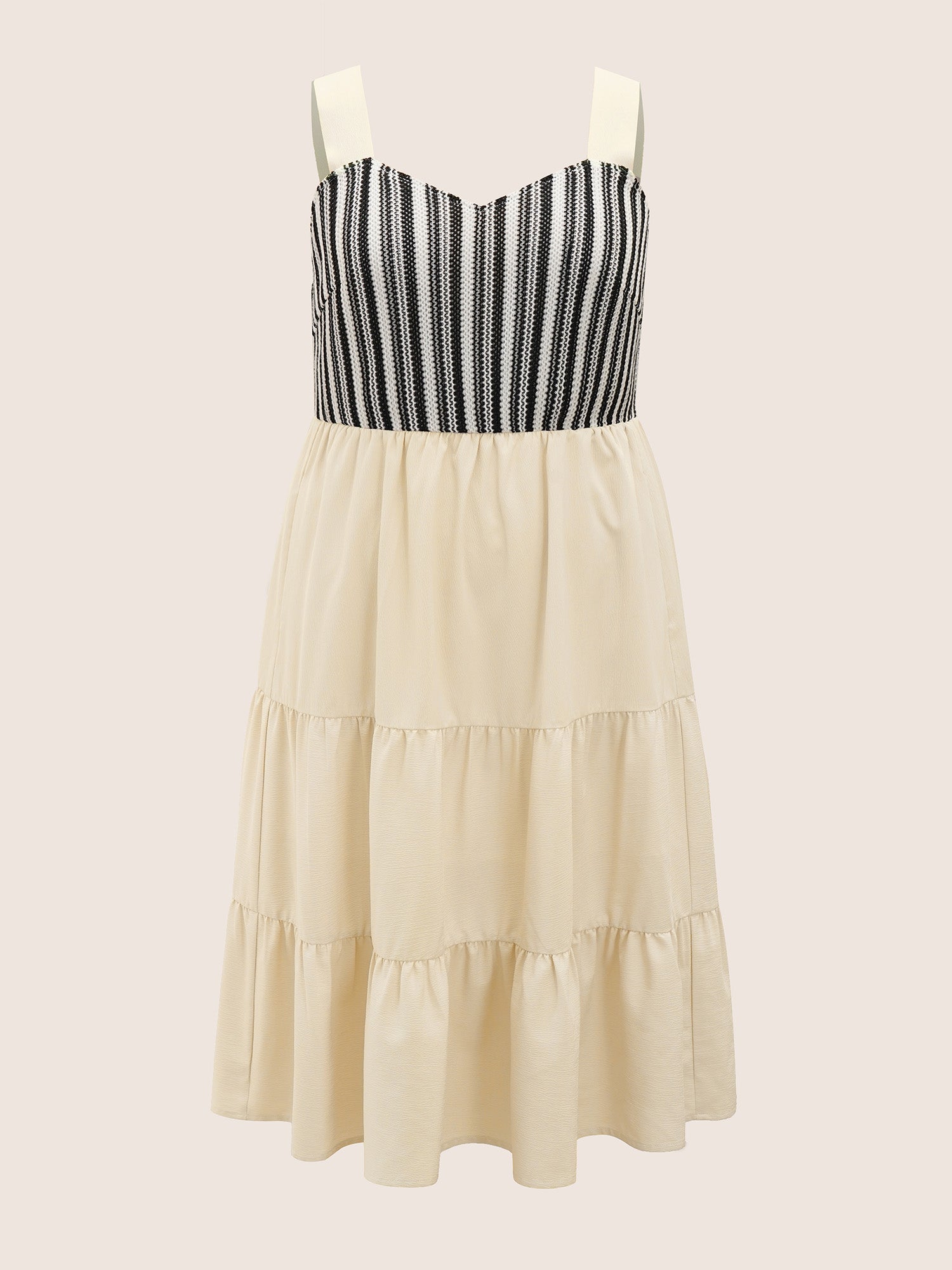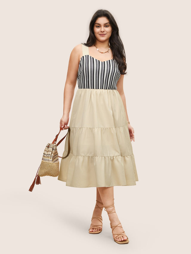 Striped Patchwork Ruffle Layered Hem Dress