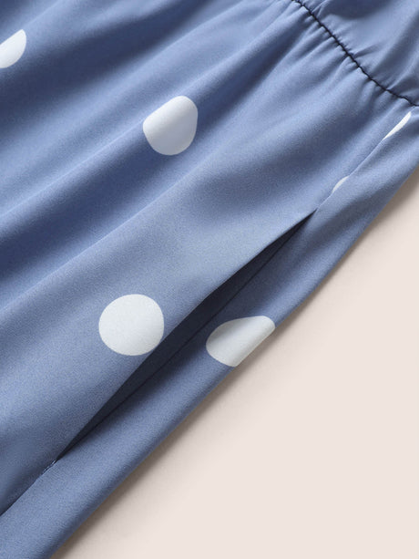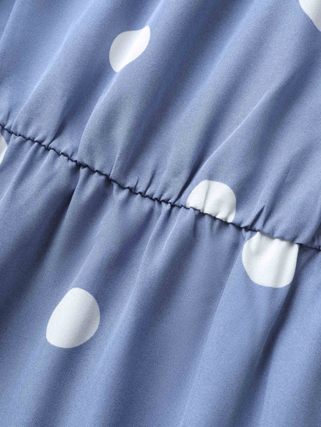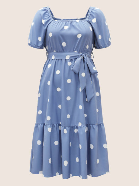 Polka Dot Gathered Belted Lantern Sleeve Dress