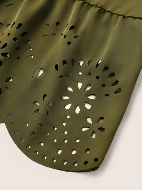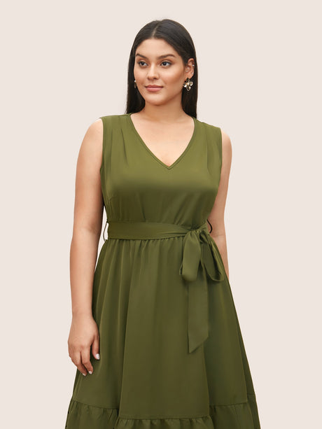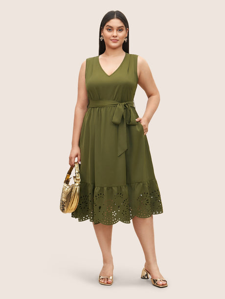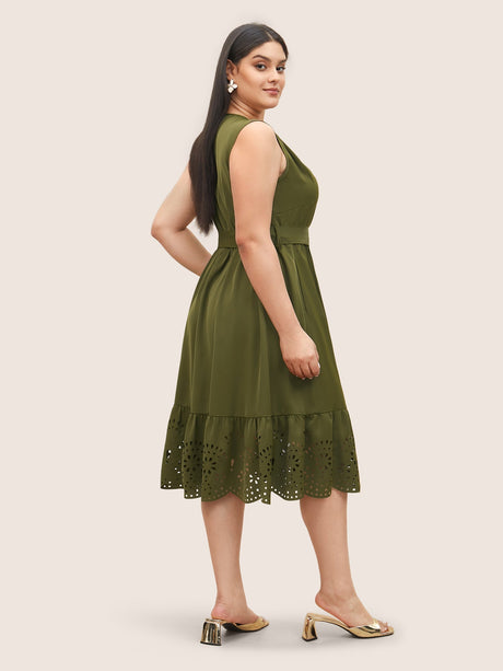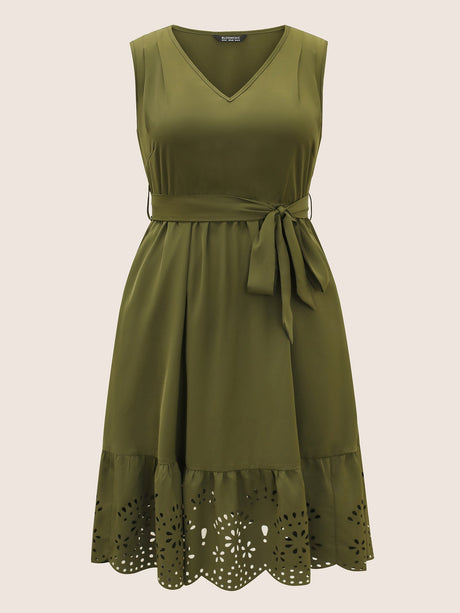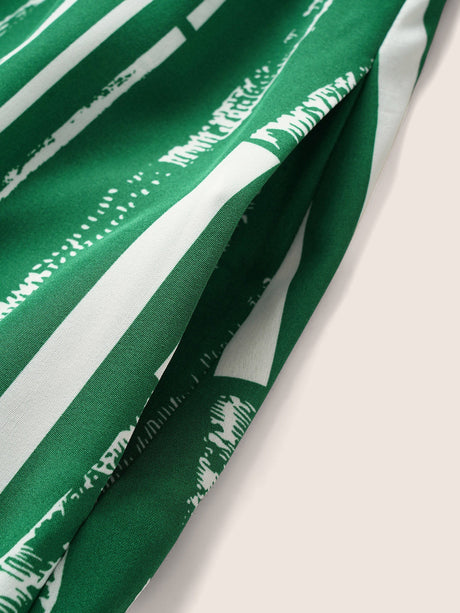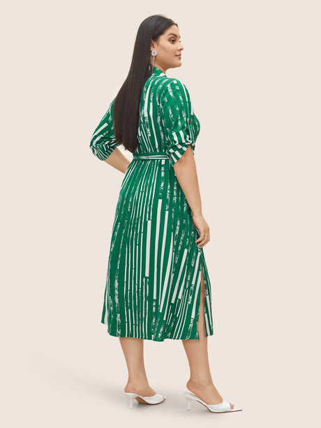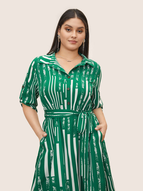 Geometric Shirt Collar Tab Sleeve Belted Dress