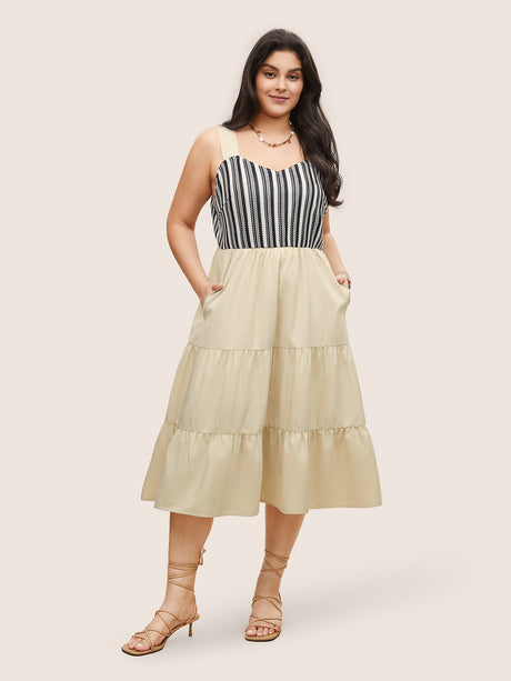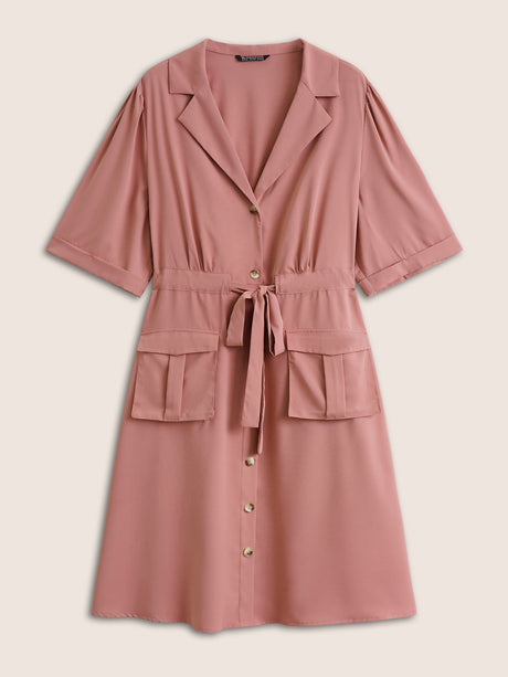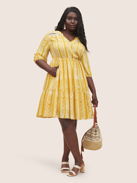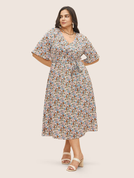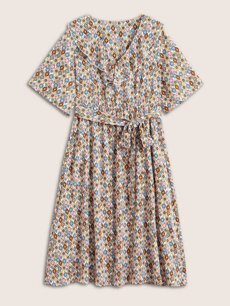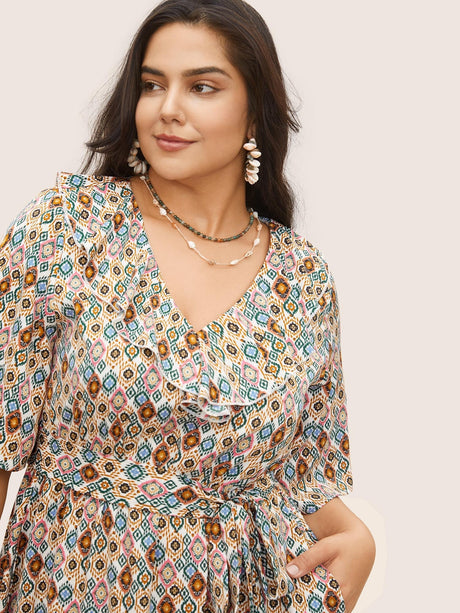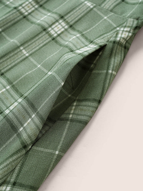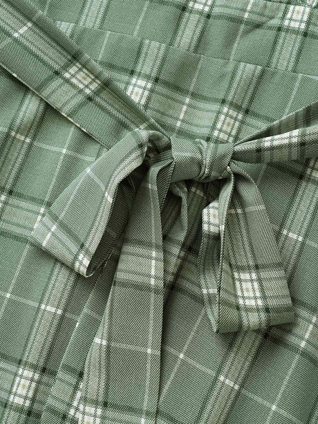 Plaid Surplice Neck Pocket Curved Hem Dress