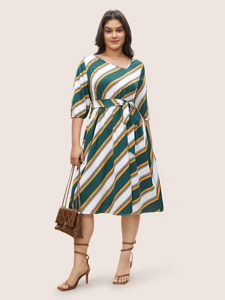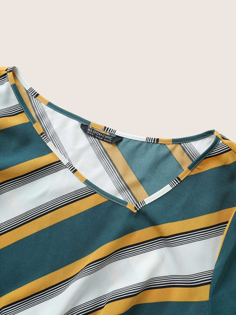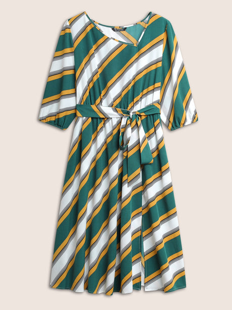 Colorblock Contrast Patchwork Gathered Raglan Sleeve Dress