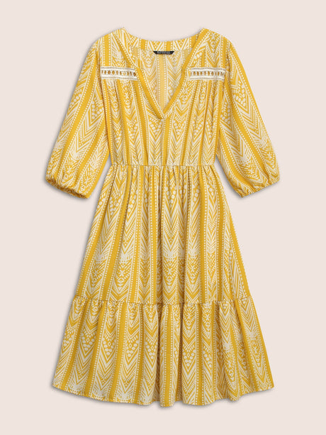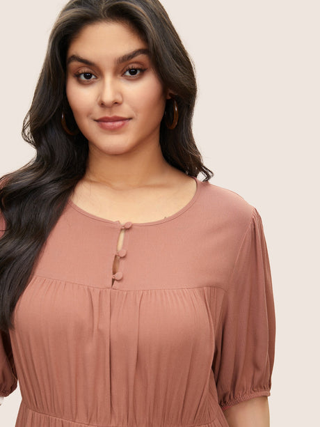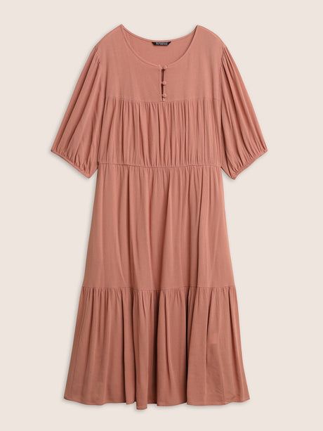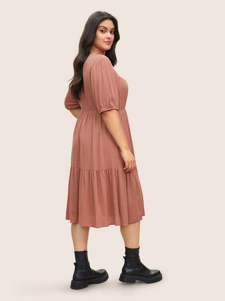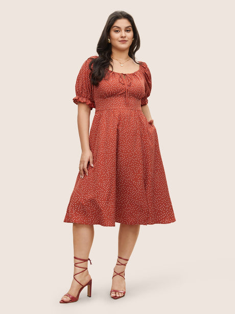 Polka Dot Ties Lantern Sleeve Gathered Dress