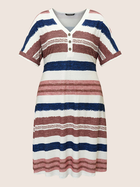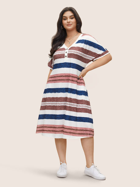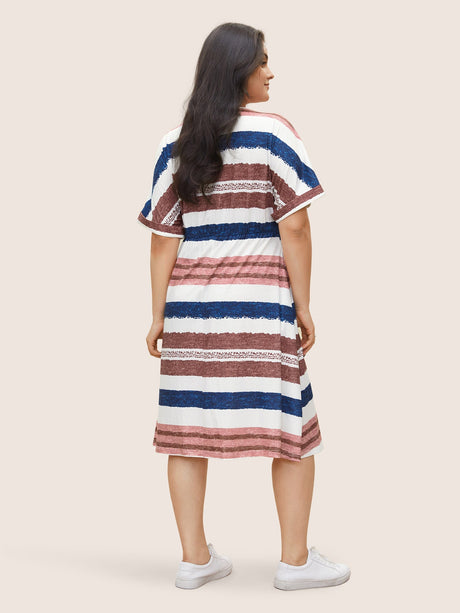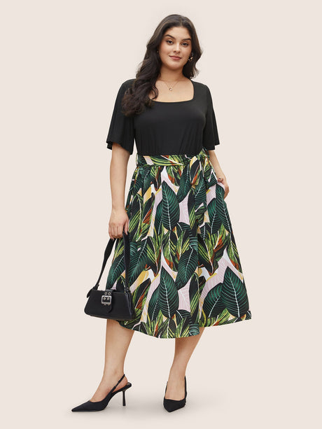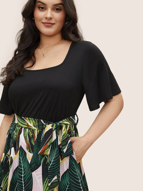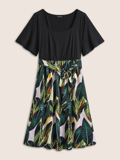 Geometric Colorblock Contrast Square Neck Belted Dress
