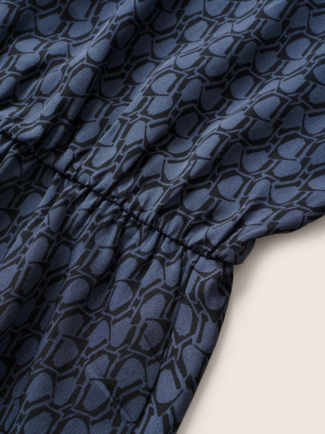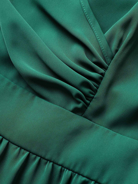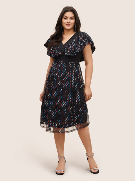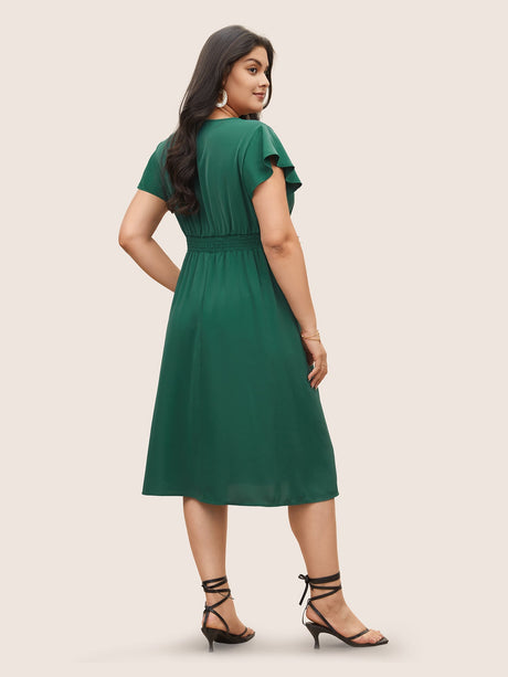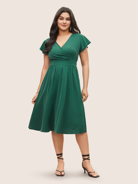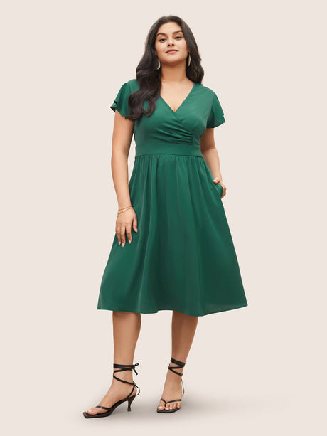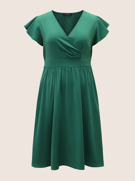 Overlap Collar Ruffle Cap Sleeve Gathered Dress