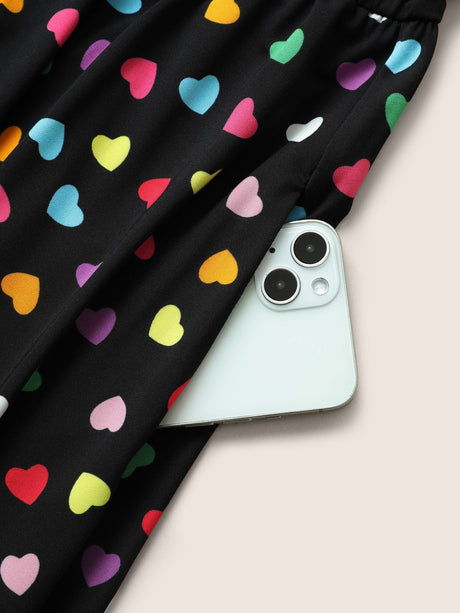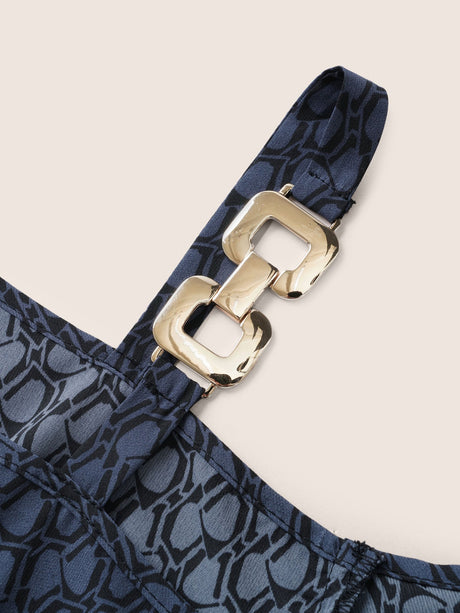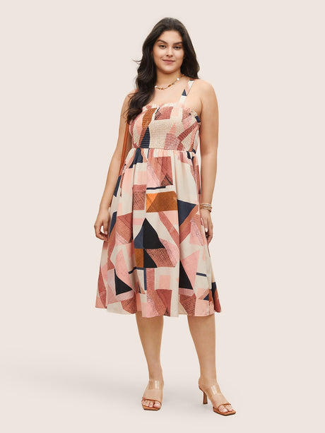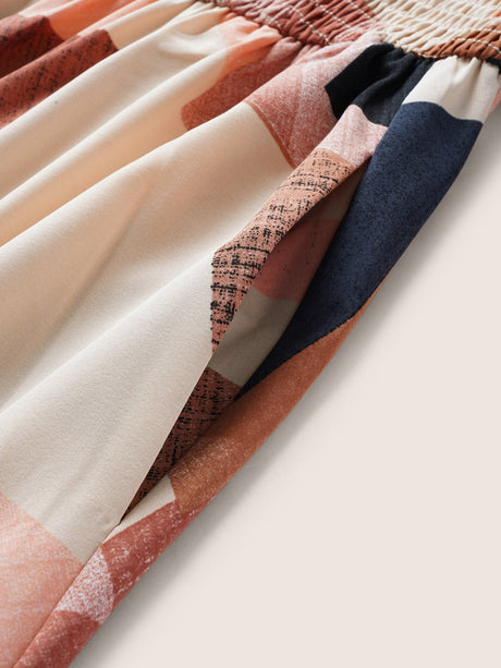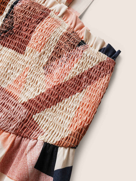 Geometric Colorblock Shirred Frill Trim Cami Dress