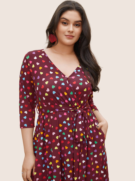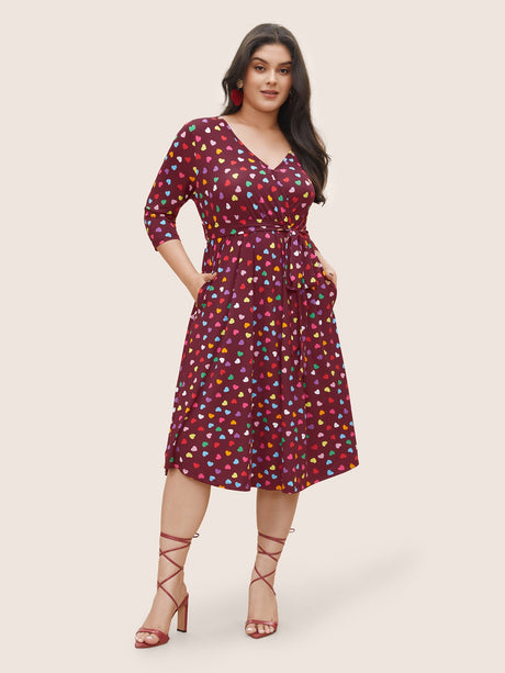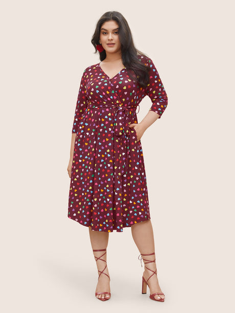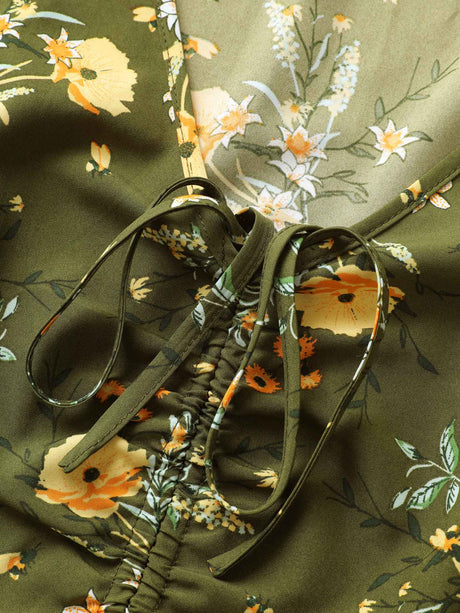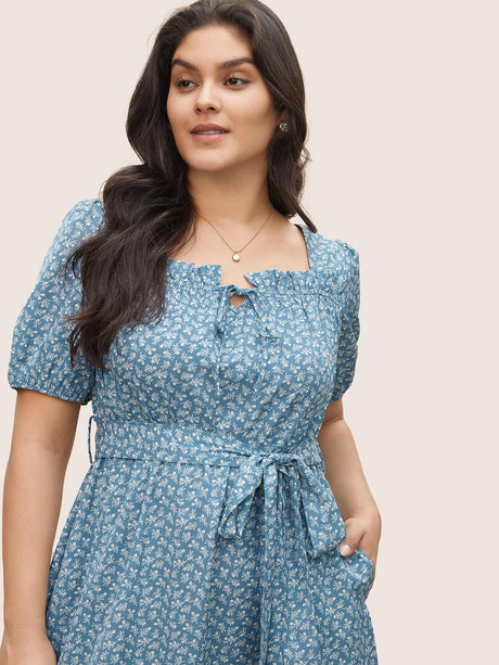 Ditsy Floral Tie Neck Frill Trim Belted Dress