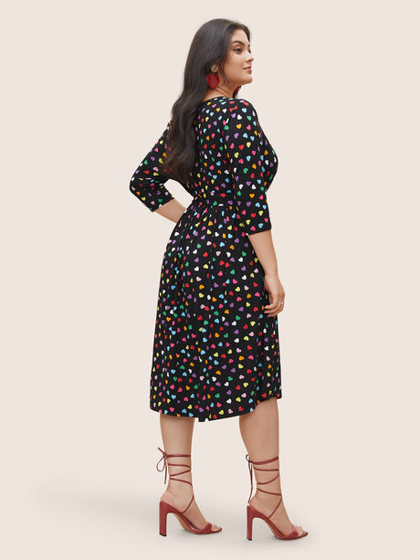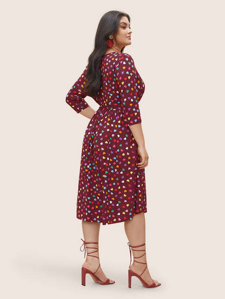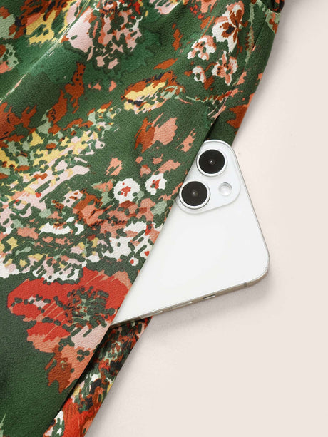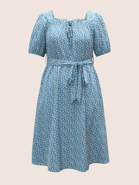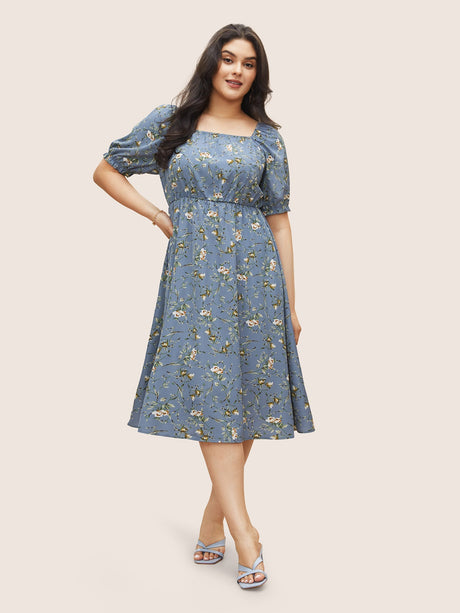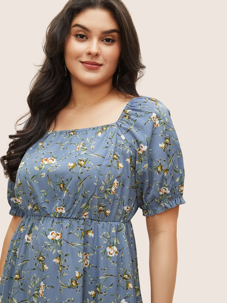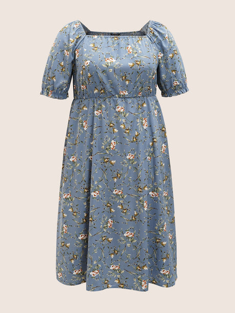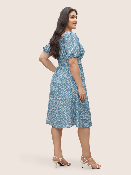 Ditsy Floral Square Neck Elastic Waist Gathered Dress