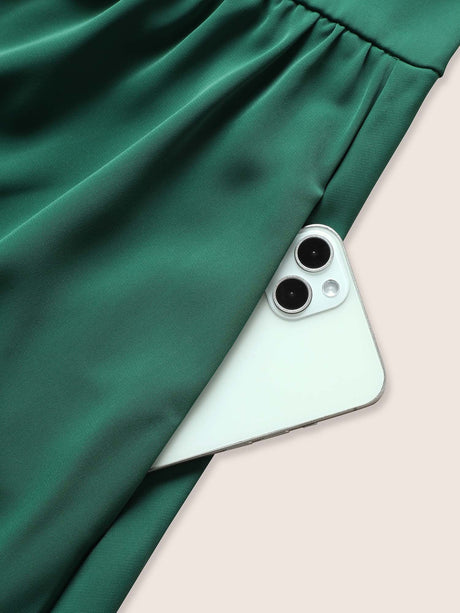 Sequin Patchwork Pocket Flutter Cap Sleeve Dress