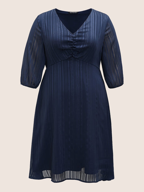 Textured Chiffon Mesh Patchwork Ruched Dress