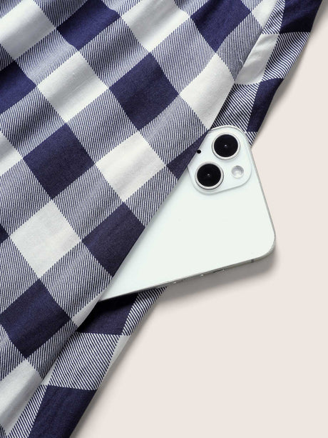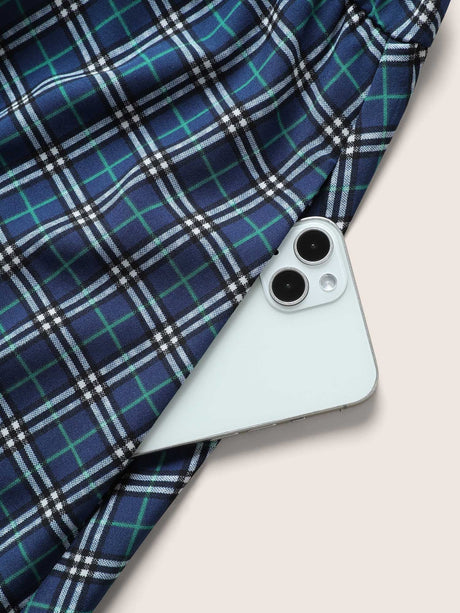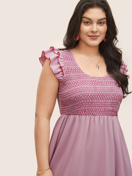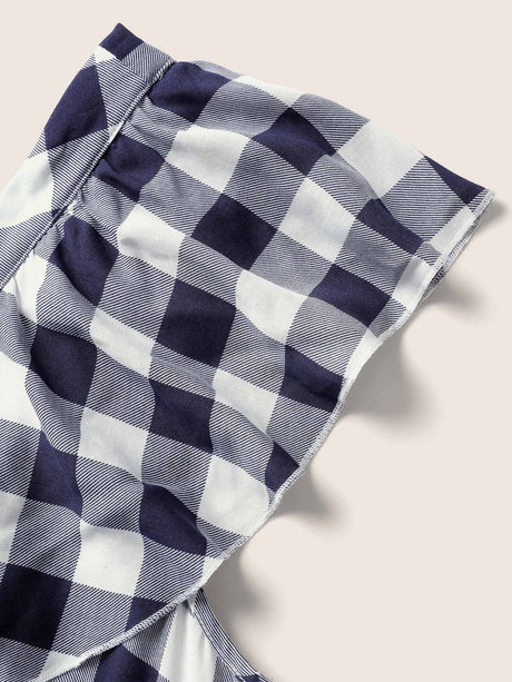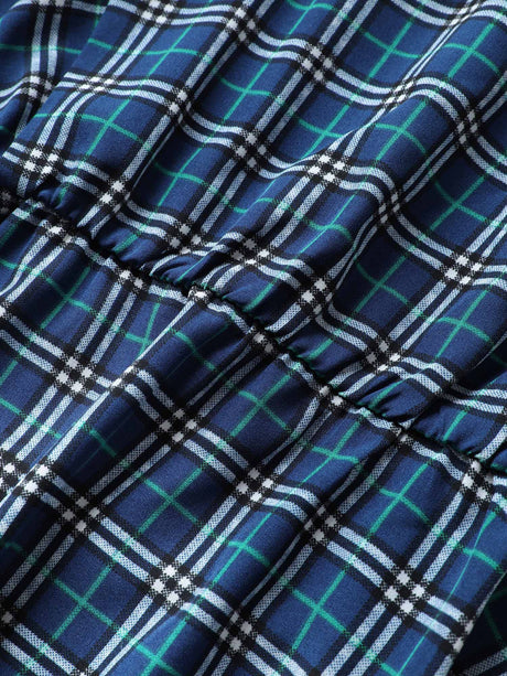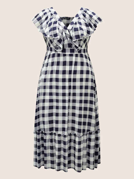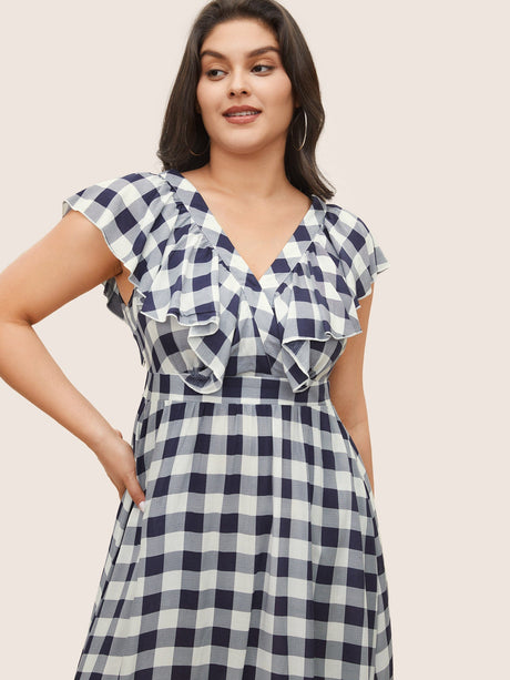 Plaid Elastic Waist Patchwork Ruffle Cap Sleeve Dress
