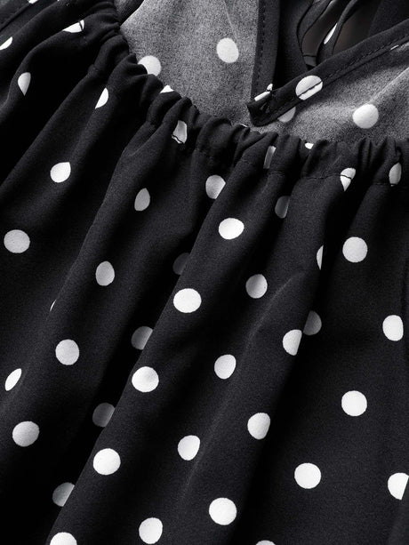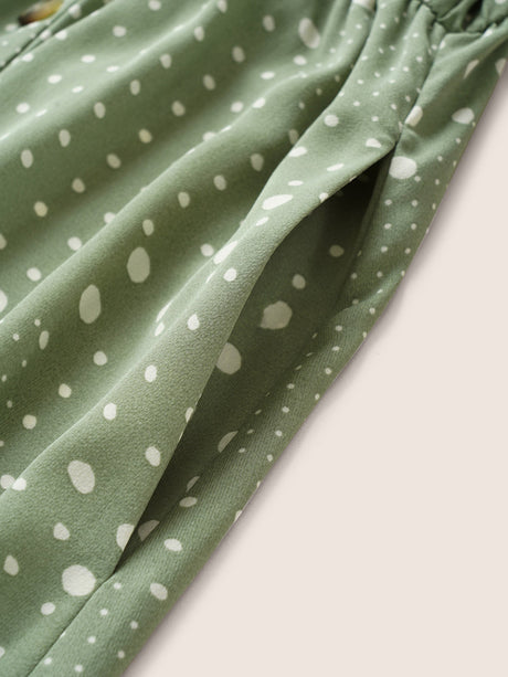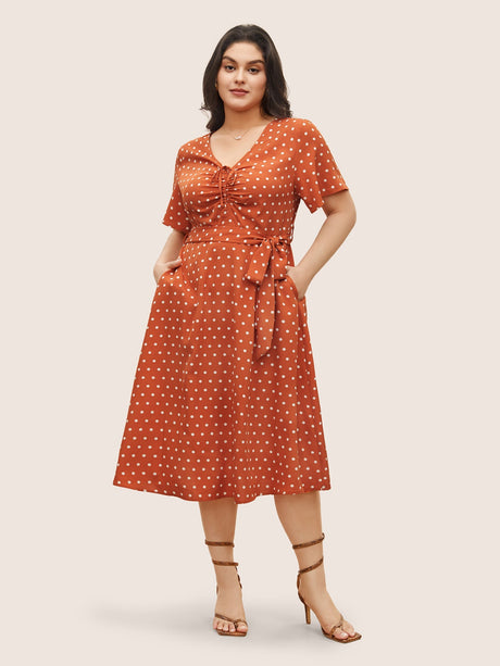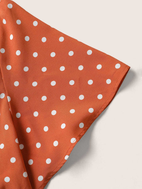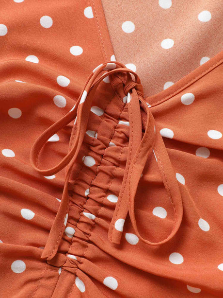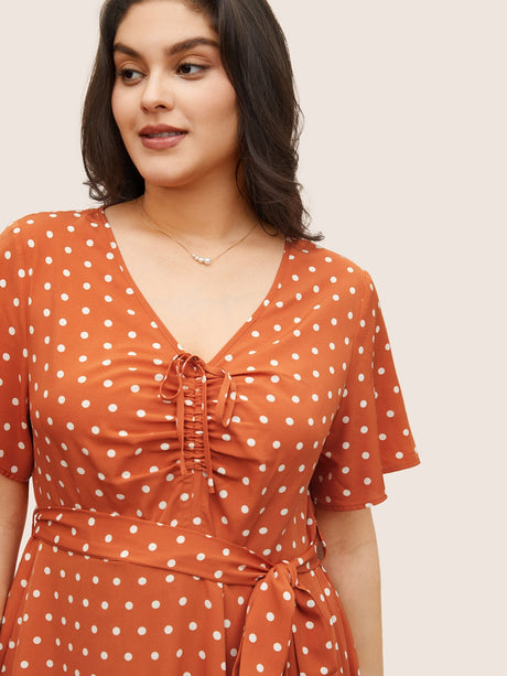 Polka Dot Drawstring Belted Ruffle Sleeve Dress