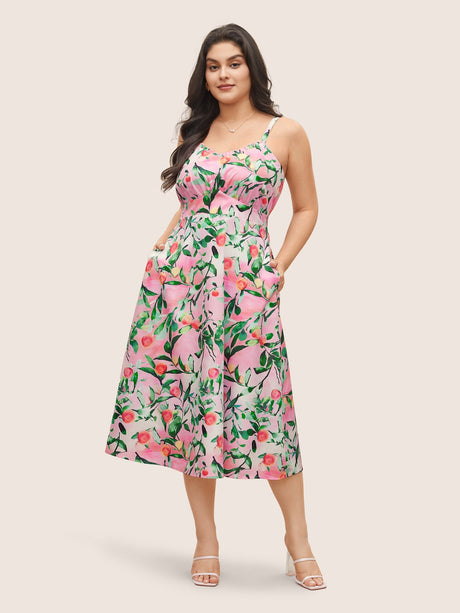 Peachs Print Frill Trim Pocket Cami Dress
