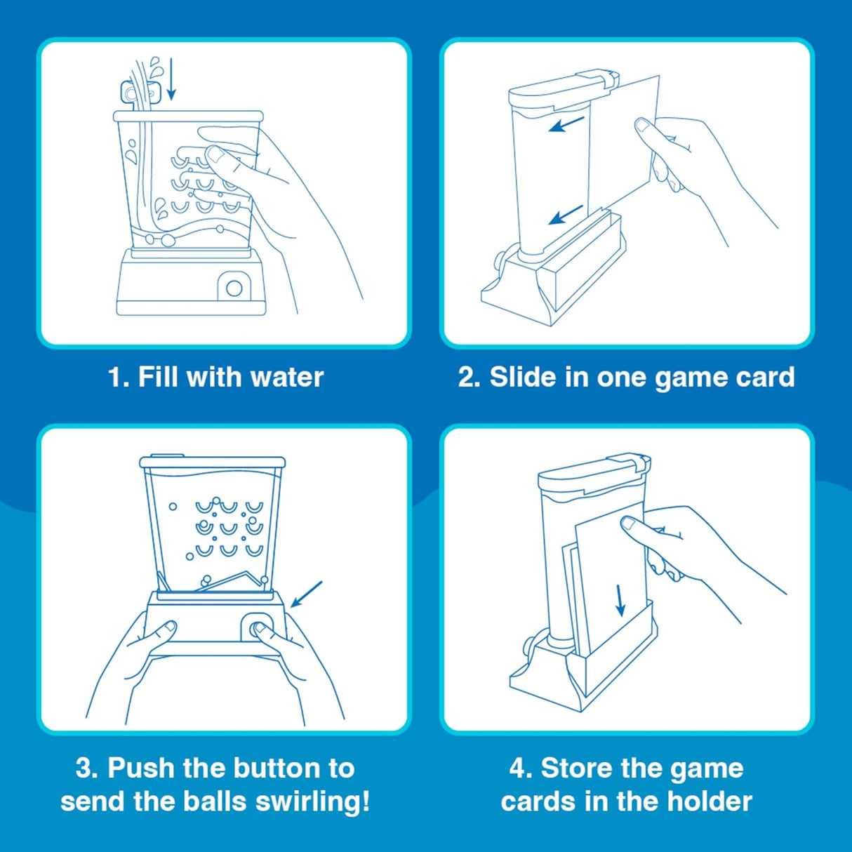 Change up the play by choosing one of 6 different games. Simply slide the game card in the grooves on the back of the toy and enjoy classic play with a WHOOSH of water-filled fun — just like you remember! The game cards tuck neatly away when the fun is done.