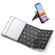 Details: iClever - Ever Clever This ultra slim tri-folding Bluetooth keyboard lets you enjoy creating and communicating across multiple platforms on Bluetooth enabled devices wirelessly. With a compact and portable design, this wireless Bluetooth keyboard is the perfect keyboard for travel. Broad Compatibility The muti-device portable keyboard works well with all Bluetooth enabled devices with IOS, Android or Windows system. Operating Range The newest Bluetooth 5.1 chip provides up to 33 feet without any issues in connection for great typing. Compact and Lightweight The tri-folding Bluetooth keyboard is compact and lightweight (pocket sized), perfect for travel. When folded, the keyboard is smaller than an iPhone 6 Plus. Comfortable and Quiet Typing The whisper quiet keys allow you to work anywhere. Aircraft-grade Aluminum Made of aircraft-grade aluminum for superior durability. Anodized Matte Process Creates excellent sense of touch. Note: 1.It is not compatible with Nokia phones,Mac mini and Windows 8 operating systems. 2.After connecting with the device, you must press Fn and A/S/D key (A for Android, S for iOS, D for Windows) to select operating system. 3.To activate the function of icon marked in blue color, please press Fn and blue color keys simultaneously 4.Fold it to power off the keyboard to conserve energy if it is not in use. Do not use out of the Bluetooth coverage. Package Content: Bluetooth Keyboard 1 x USB Charging Cable 1 x Carrying Pouch 1 x User Manual
