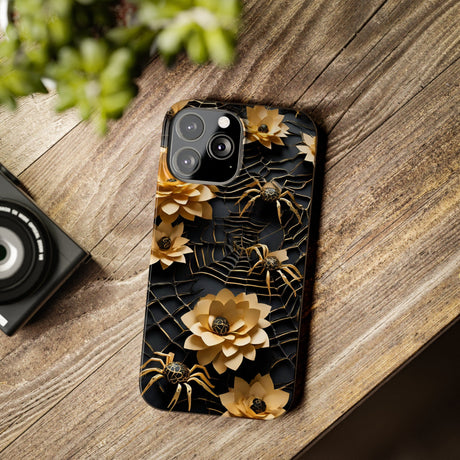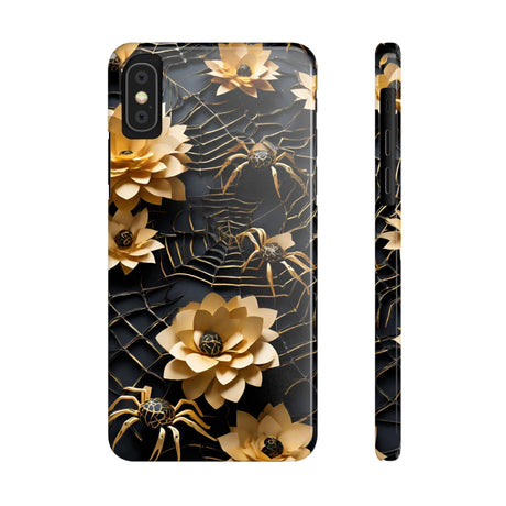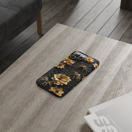 Halloween Black & Gold Spider Slim Phone Cases, Gold Flower Phone Case