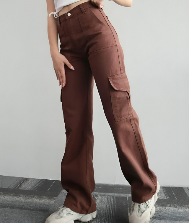 TIRELESS USABILITY: ELEVATE YOUR STYLE WITH OUR WOMEN'S HIGH-WAISTED WIDE CARGO TROUSERS!