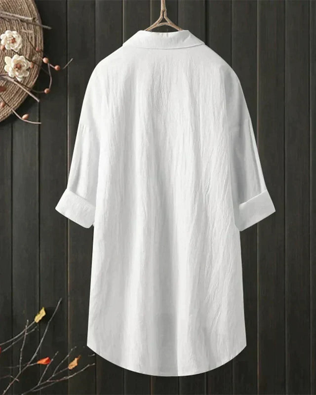 - This plain blouse is made of high-quality cotton and linen. The material is soft and breathable; moreover, it is suitable for spring, summer, and autumn, even for sensitive skin.