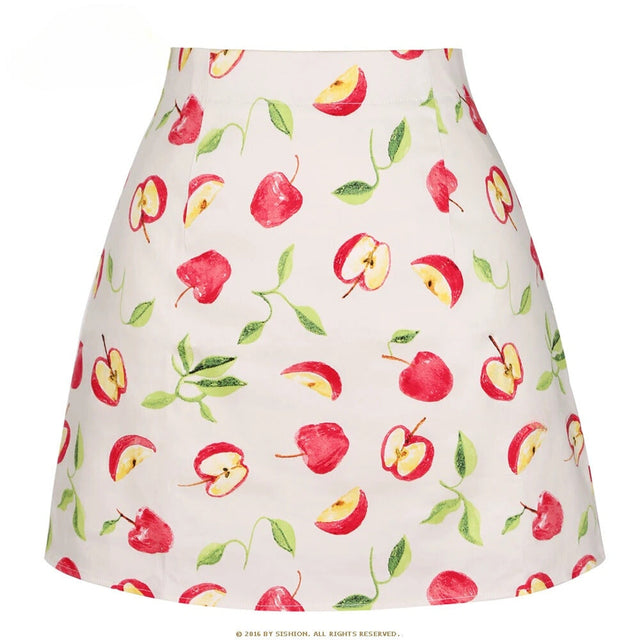 Boho skirt with fruit pattern - White / S is backordered and will ship as soon as it is back in stock.