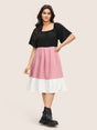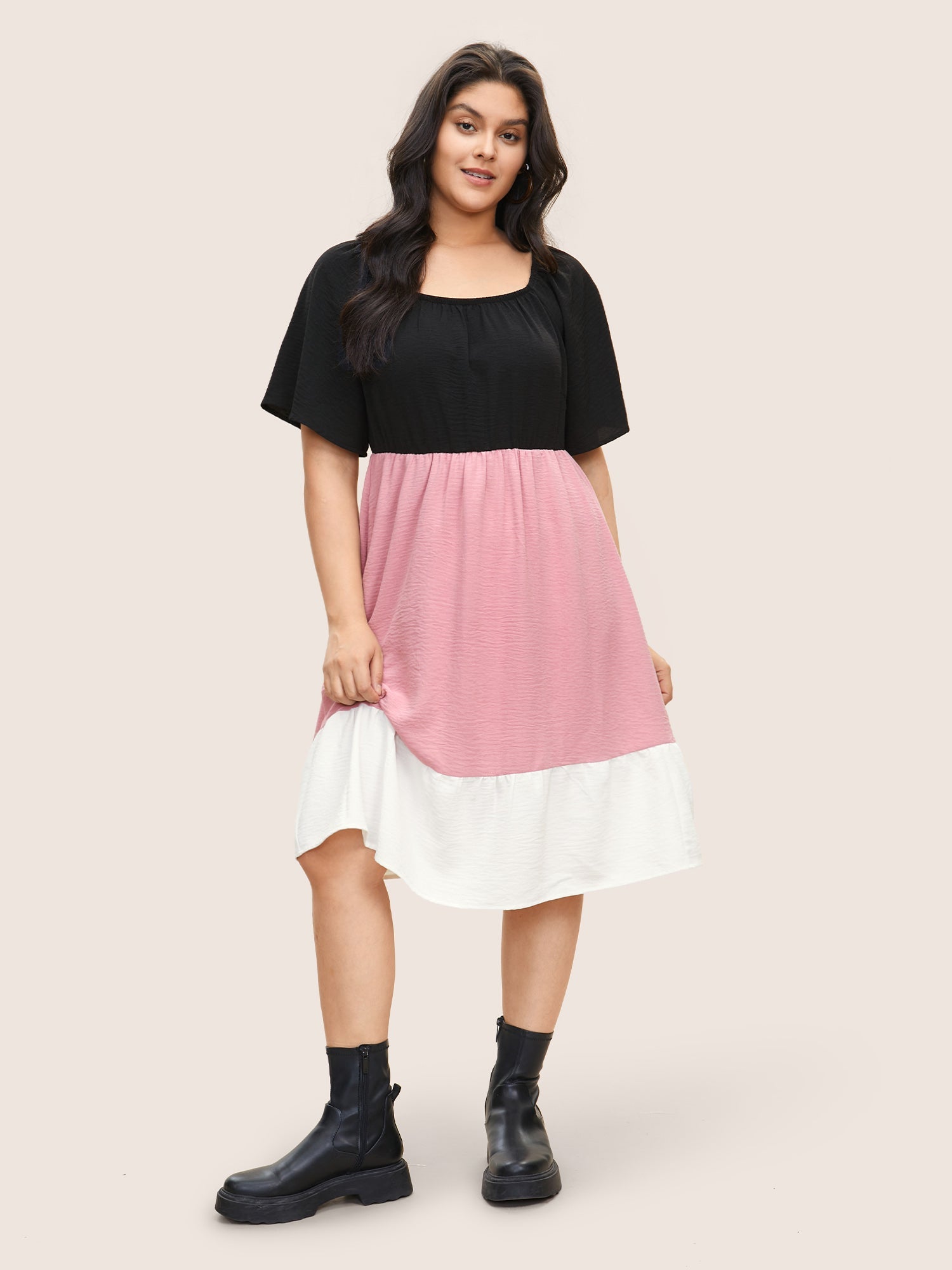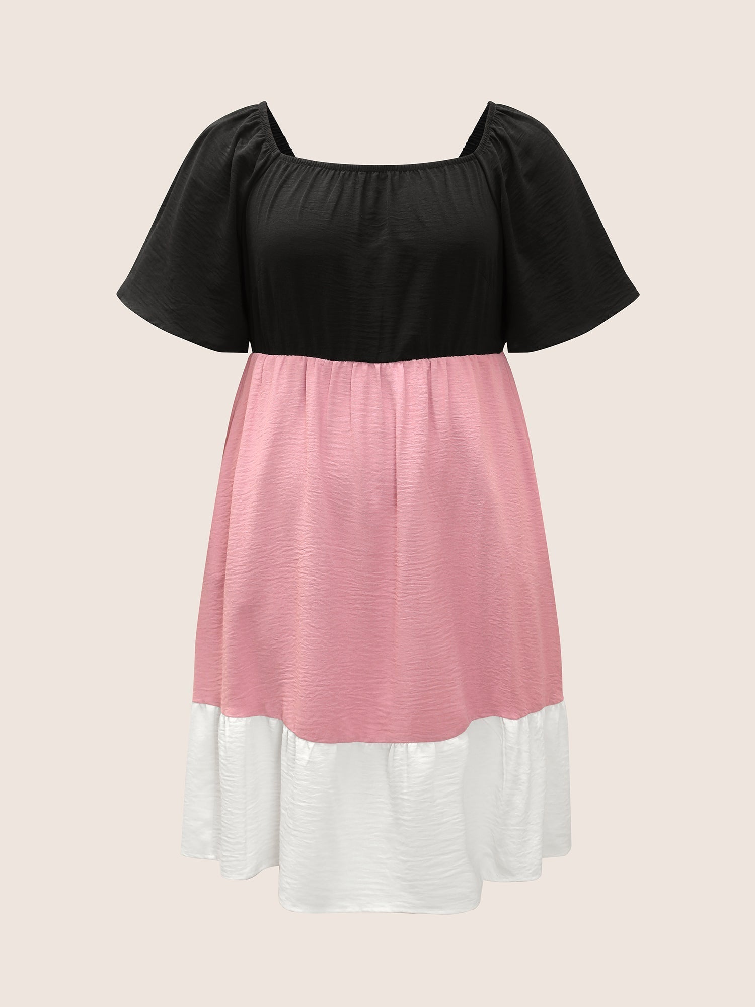 Colorblock Contrast Patchwork Gathered Raglan Sleeve Dress
