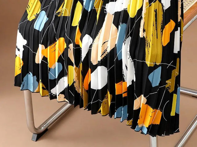 This colourful chiffon midi dress is a real eye-catcher and will liven up your wardrobe. Its elasticated waistband, pleated A-line cut and swinging skirt make it ideal for warm days and balmy evenings. Be inspired by the lightness and vibrant colours of this dress!