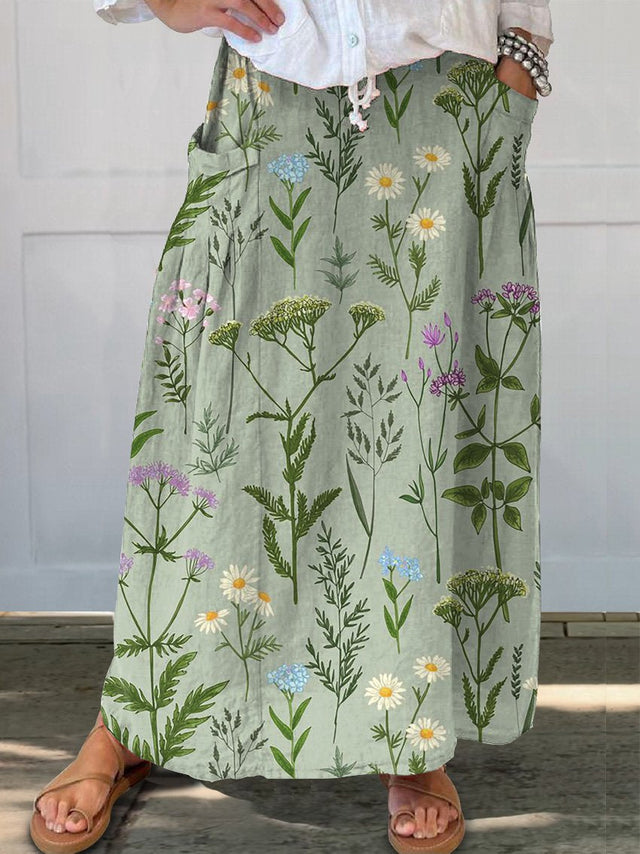 Enriched Spring Field Repeat Pattern Printed Women's Linen Pocket Skirt