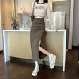 Korean-style midi skirt for women with pleats and side slit - Coffee / S is backordered and will ship as soon as it is back in stock.