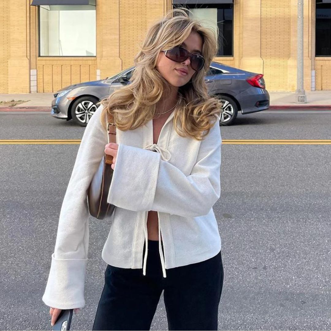 Leanne - Textured cardigan with flared sleeves - Apricot / XS is backordered and will ship as soon as it is back in stock.
