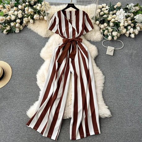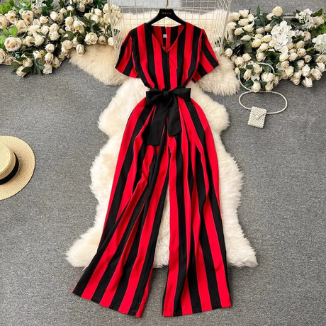 Talitha - Women's Striped Bow Detailed Jumpsuit