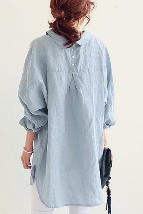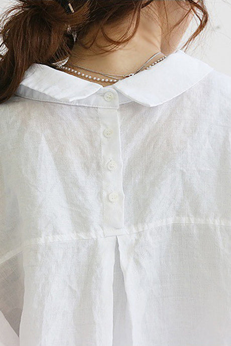 Women's Solid Color Loose Button Doll Collar Cotton Linen Top